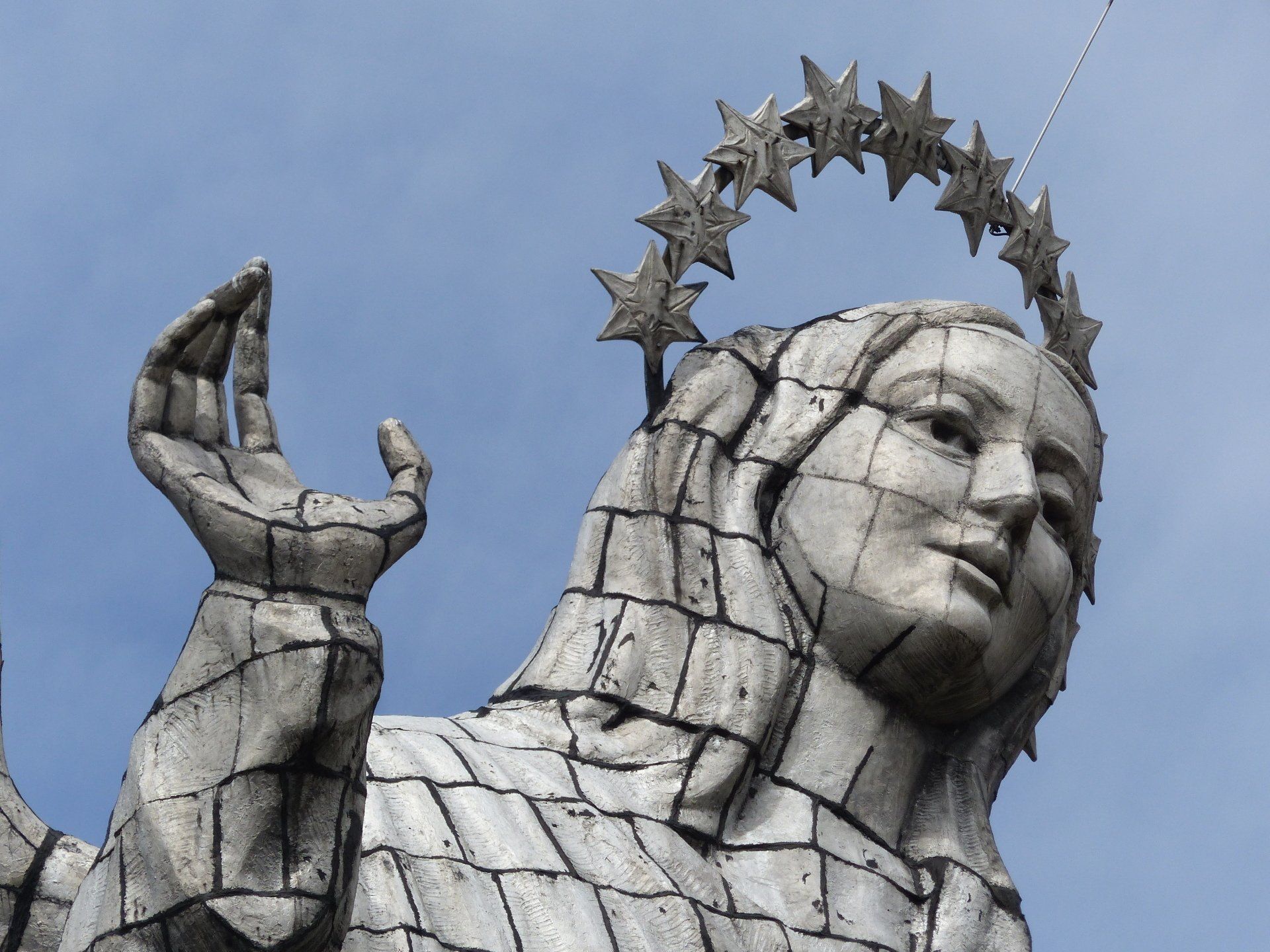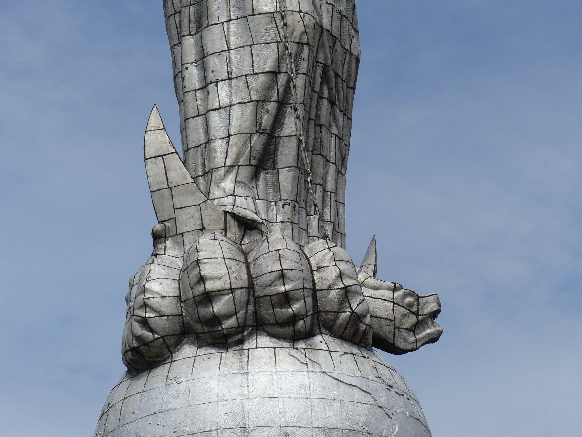 So fahren wir mit dem Auto auf eine Höhe von 3.100 Metern mit umwerfendem Blick auf Quito und die am Horizont liegenden Vulkane. Dort oben auf dem Panecillo befindet sich eine Marienstatue, deren Sockel eine Schlange darstellen soll. Ich kann mich anstrengen, wie ich will, für mich sieht diese Schlange aus wie ein Drache oder ein Krokodil oder eine Mischung aus beidem. Das Tier- oder Fabelwesenmysterium werde ich für mich nicht mehr auflösen. Mein Mann scheint da mehr Fantasie zu haben, er erkennt eine Schlange.