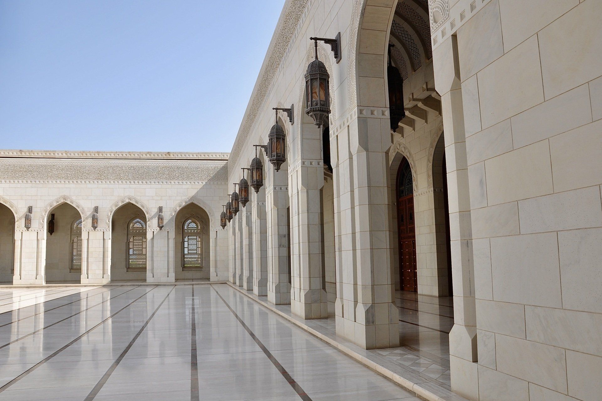 Den heutigen Tag wollen wir Muscat und Mutrah widmen. Um der größten Hitze zu entgehen, fahren wir gleich im Anschluss an das Frühstück zur Sultan-Qaboos-Moschee, die sich im Stadtteil Al Ghubrah befindet. Diese Moschee darf auch von Nichtmuslimen besichtigt werden.