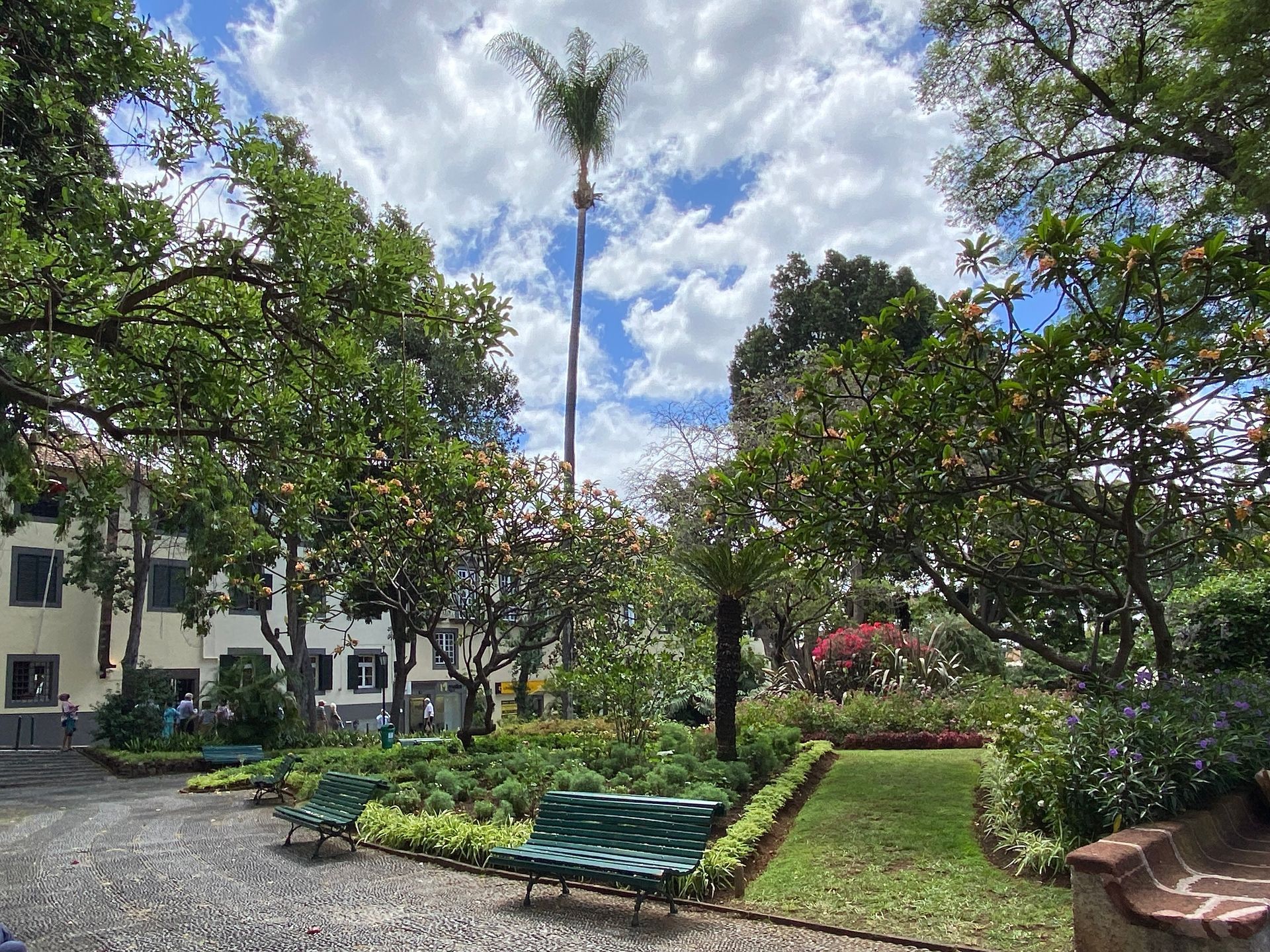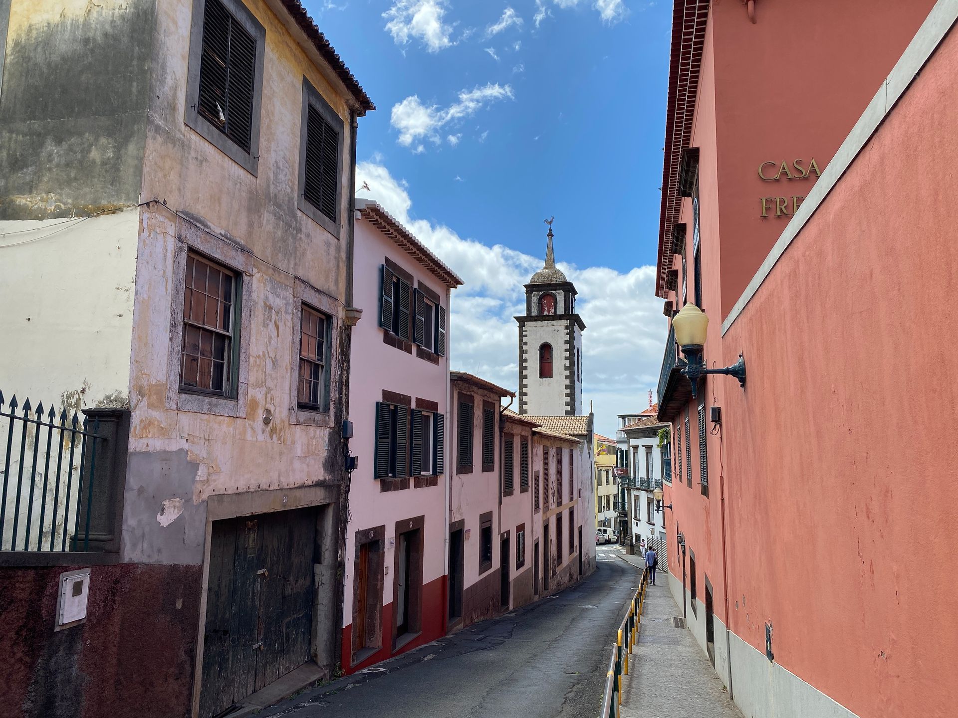 Aufgrund der Lage unseres Hotels können wir Funchal von oben nach unten erkunden und sparen uns heftige Aufstiege. Unser erster Stopp gilt dem Pico Fort, auch von hier haben wir einen schönen Ausblick über Funchal. Wir schlendern durch den kleinen, aber herrlichen Garten der Quinta das Cruzes, bevor uns die Straße immer weiter talwärts führt, vorbei an pittoresken Häusern, die zumeist ihren morbiden Charme nicht verstecken können. Dieser Teil von Funchal scheint trotz Hochsaison von Touristen wenig frequentiert.