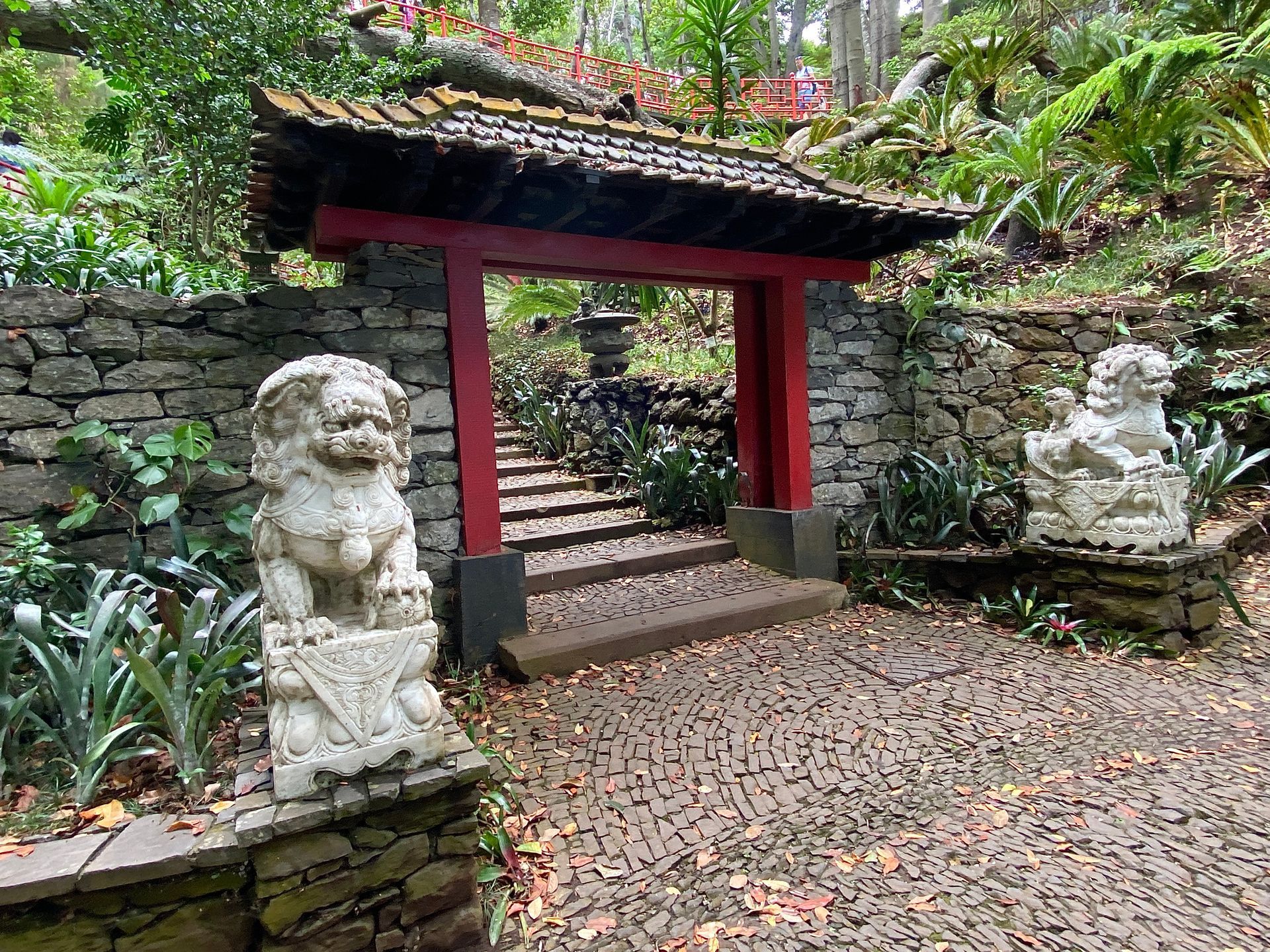 Unweit des so schön geschmückten Areals befindet sich der Jardim Tropical von Monte. Das Besondere an diesem Garten ist das Zusammenspiel von Kunst und Pflanzen, natürlich fehlen nicht die Azulejos, die Motive aus der wechselvollen Geschichte Portugals darstellen. Auch der tropische Garten gefällt uns sehr gut.