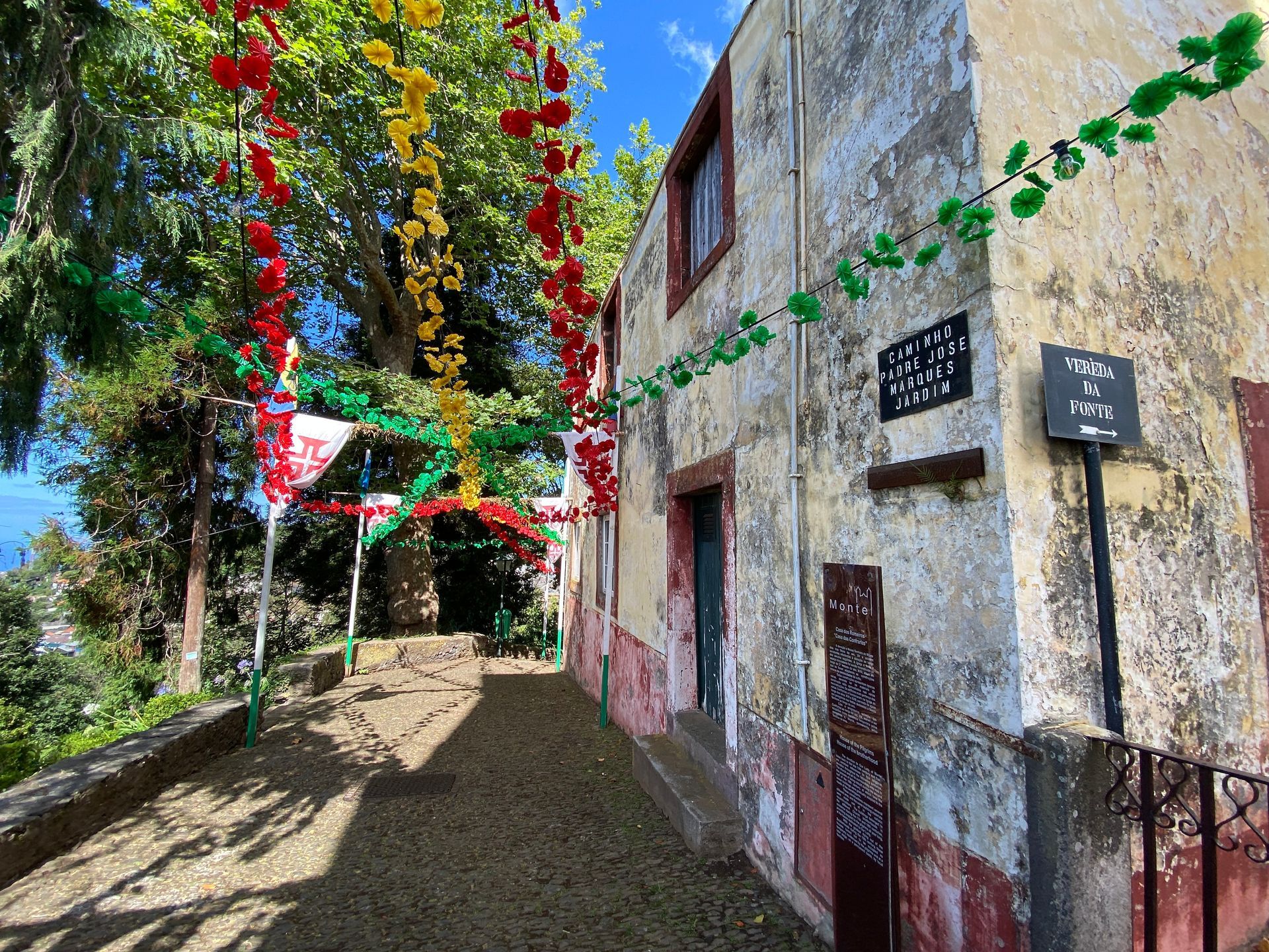 Das äußere Areal sowie die kleinen Straßenzüge rund um die Wallfahrtskirche Nossa Senhora do Monte, in der der letzte Kaiser von Österreich-Ungarn, Karl I., in einem Seitenschiff seine letzte Ruhe fand, sind farbenfroh geschmückt. Es ist zauberhaft.