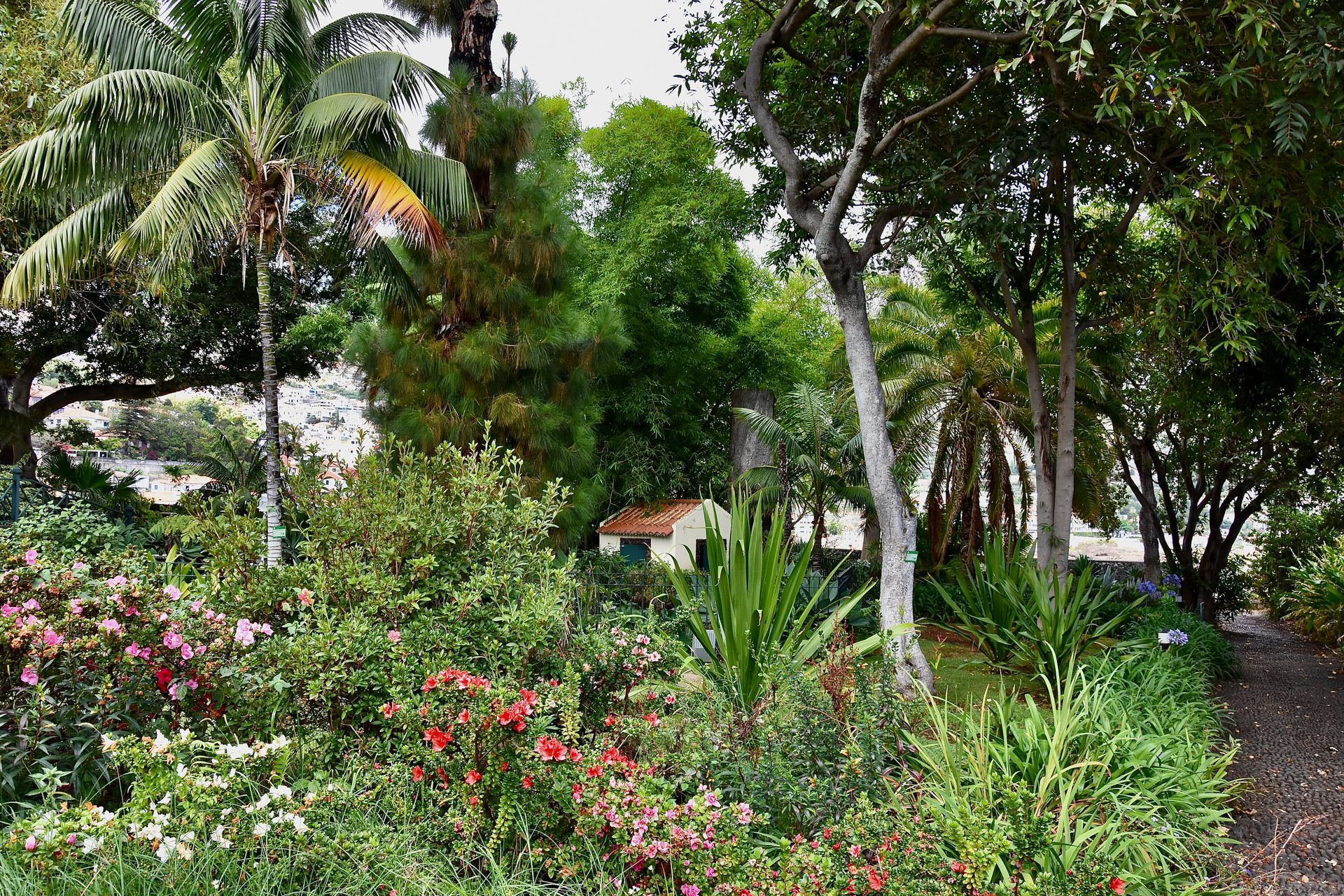 An der kleinen Kapelle vorbei führt unser Weg zur Seilbahnstation. In einer der kompakten Kabinen fahren wir zum Botanischen Garten, dem Jardim Botânico da Madeira. Mit dem Blumengarten findet sich hier ein sehr beliebtes Fotomotiv Funchals. Zurück an der Station in Monte gehen wir zum Startpunkt der Korbschlittenfahrt, wo wir uns mit wenig Begeisterung in die Schlange der Wartenden einreihen. Die Fahrt selbst ist ganz nett, aber rückblickend gesehen, hätten wir auch darauf verzichten können. Um das sagen zu können, mussten wir sie aber erst gemacht haben. Auf alle Fälle wird das ein einmaliges Erlebnis bleiben, davon sind wir beide überzeugt.