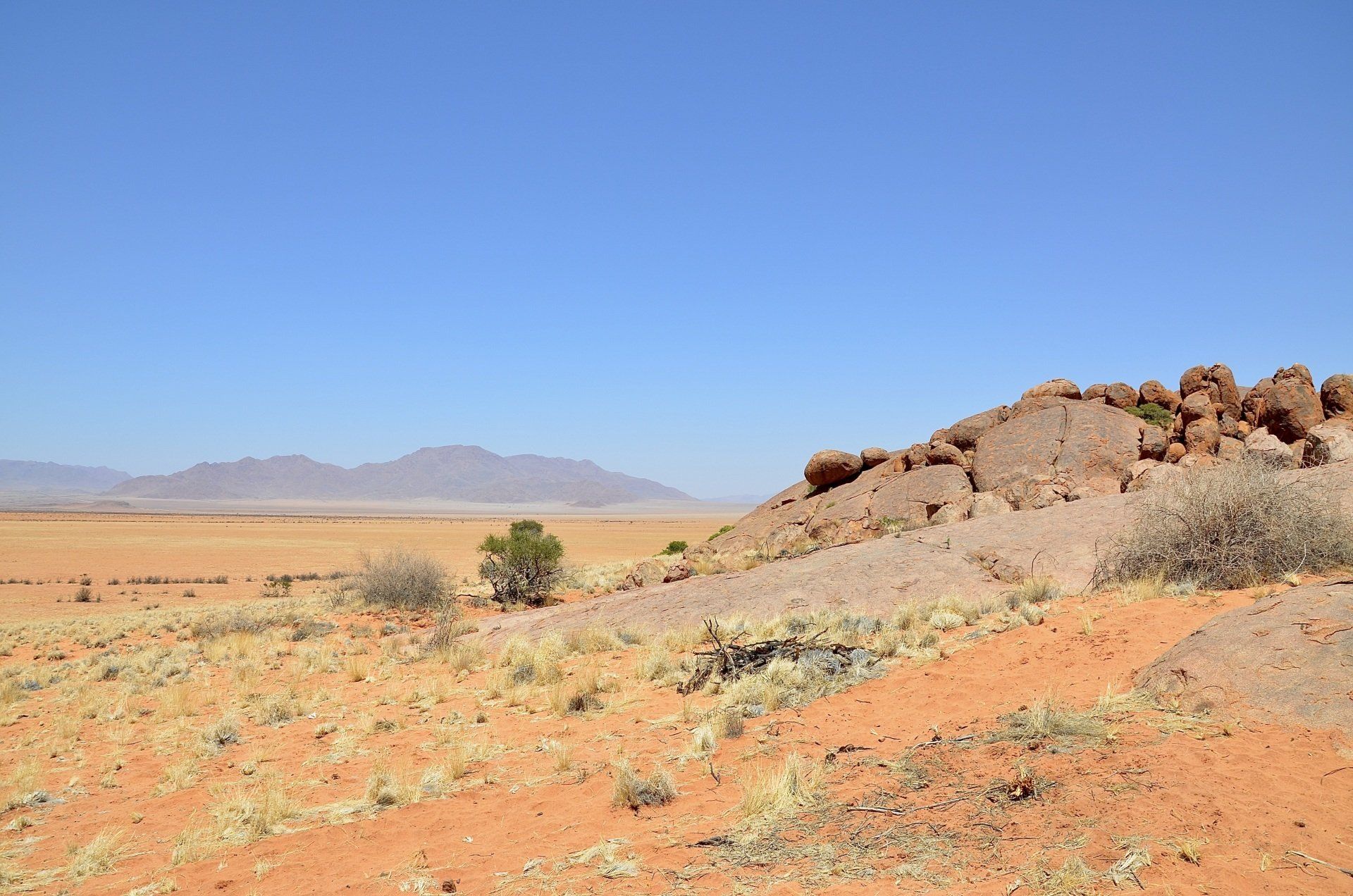 Kurz hinter Maltahöhe blockieren Jugendliche die Straße und wollen uns zum Anhalten zwingen, wir fahren jedoch durch. Wir fragen uns, was sie wollten und die ganze Situation bereitet uns großes Unbehagen, zu oft haben wir schon von Überfällen im südlichen Afrika gehört. Zum Glück zieht uns dann schnell die Landschaft wieder in ihren Bann, die Strecke über den 2.020 Meter hohen Tsarishoogte Pass ist sehr schön und die folgende Verbindung auf der D827 ist landschaftlich ein Leckerbissen.