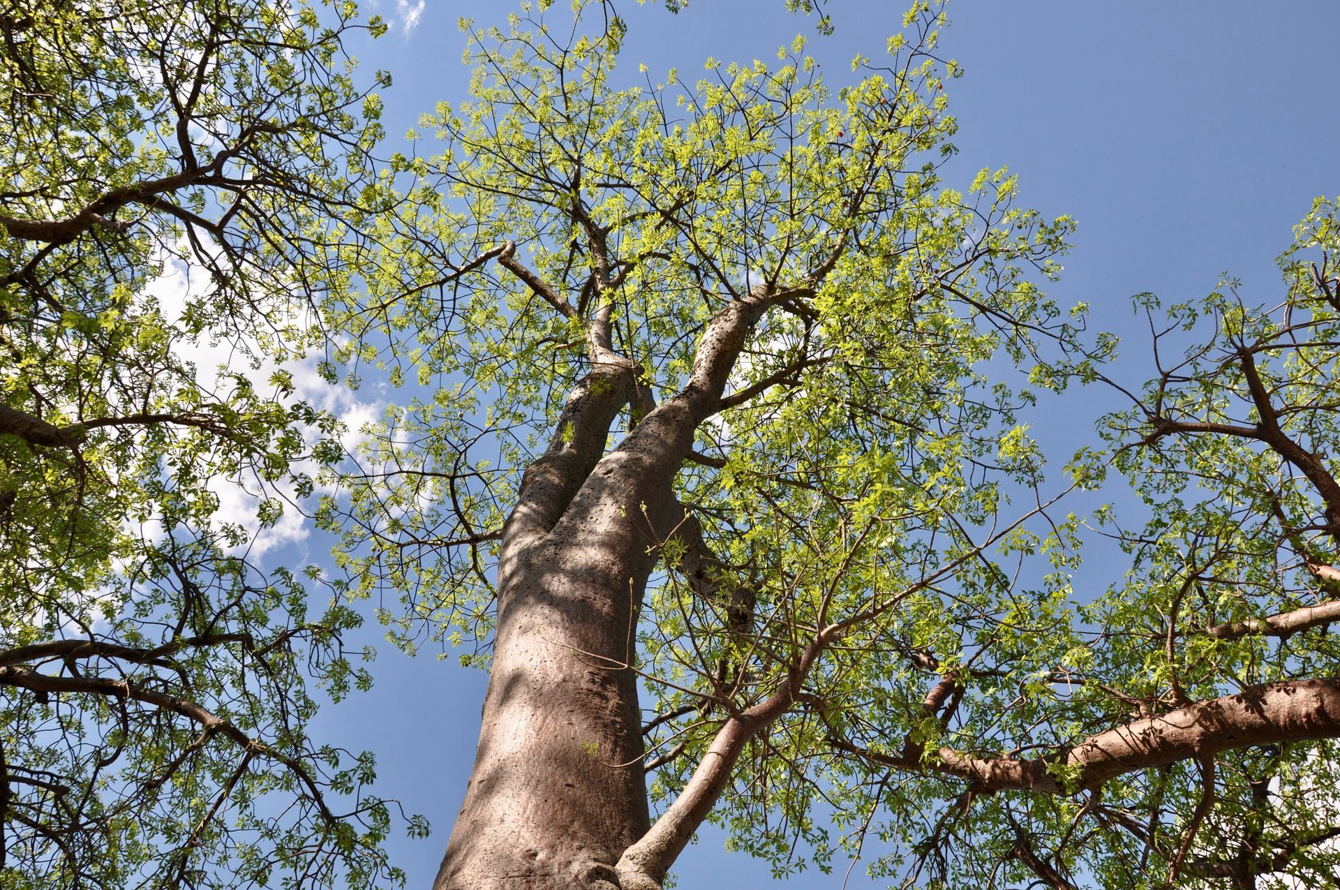 Dann plötzlich liegen sie vor uns und ich kann meinen Augen kaum trauen. Alle Bilder, die ich bisher von Baines Baobab gesehen habe, zeigten die aus der Ebene ragenden Baobabs knorrig und blätterlos. Uns zeigen sie sich nun zwar immer noch knorrig, wie es sich für einen ordentlichen Baobab gehört, aber mit grünem Blättergewand. Zuerst kann ich es nicht richtig einordnen, wie ich das finden soll, aber ganz schnell stelle ich fest, wie wunderbar sich das Grün über der hellgrauen Salzpfanne und vor dem blauen Himmel abhebt. Dieser Ort ist exakt so, wie in meiner Vorstellung, er ist einfach magisch. Sicherlich trägt ein nicht unwesentlicher Anteil dazu bei, dass wir auch hier wieder ganz alleine sind.
