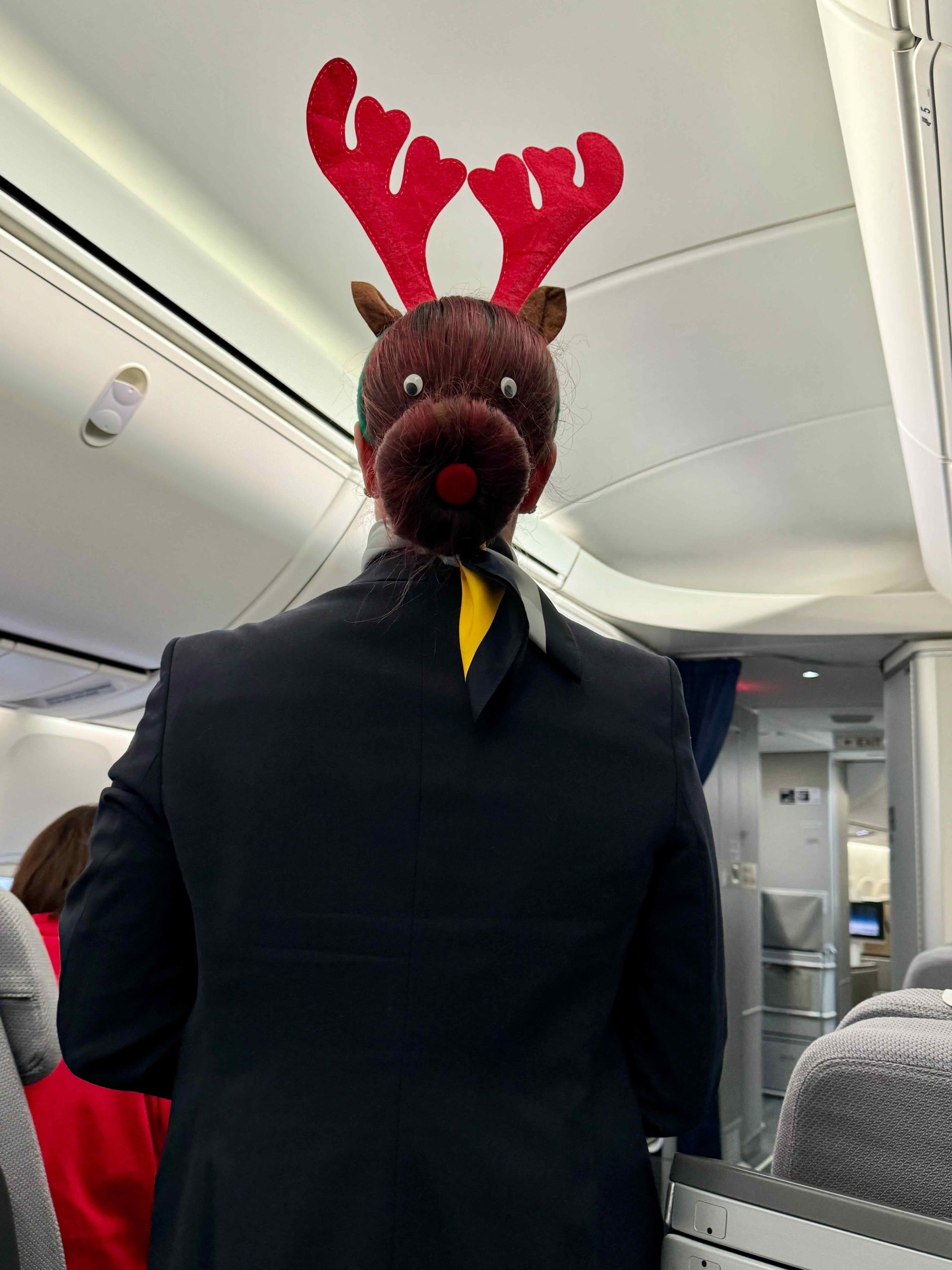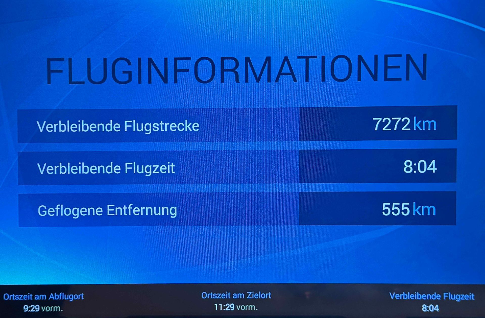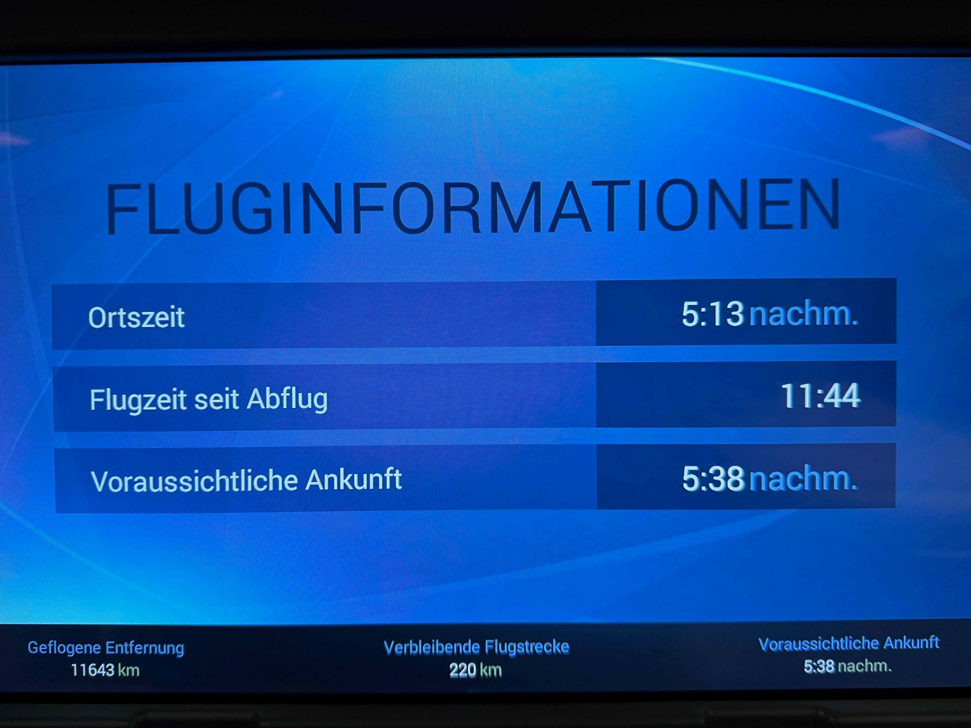 Wir haben in der Lufthansa Maschine Platz genommen, haben uns eingerichtet, unseren Willkommensdrink erhalten und Filme auf die Wunschliste gesetzt. Manch Flugbegleiterin hat sich für Weihnachten etwas einfallen lassen. „Boarding completed“ tönt es bereits, doch dann vernehmen wir die Durchsage des Kapitäns. So beginnt für uns das Drama, Drama …
