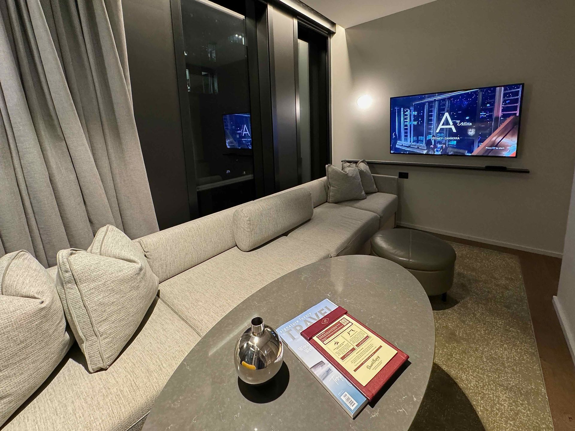 Unser Hotel für die nächsten fünf Nächte liegt zentral im Central Business District. Die Rezeption und der Pool befinden sich im 21. Stockwerk. Unser Appartement verfügt über ein separates Schlafzimmer, ein modernes Bad, eine Küchenzeile und einen Wohnbereich mit einer langen Couch, von der wir einen schönen Blick von oben auf das Geschehen entlang der Straße haben. Der erste Eindruck ist schon einmal sehr gut. Wir werden sehen, wie es morgen bei Tageslicht sein wird.