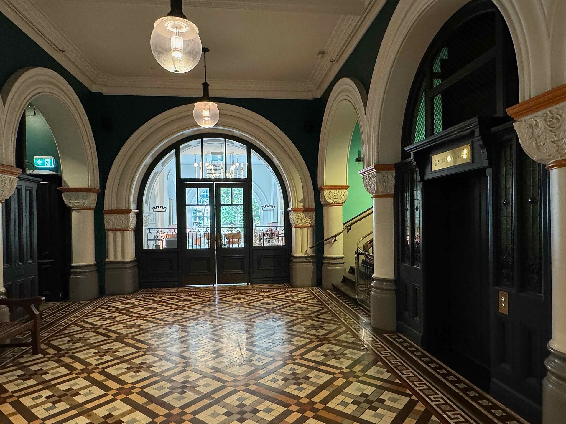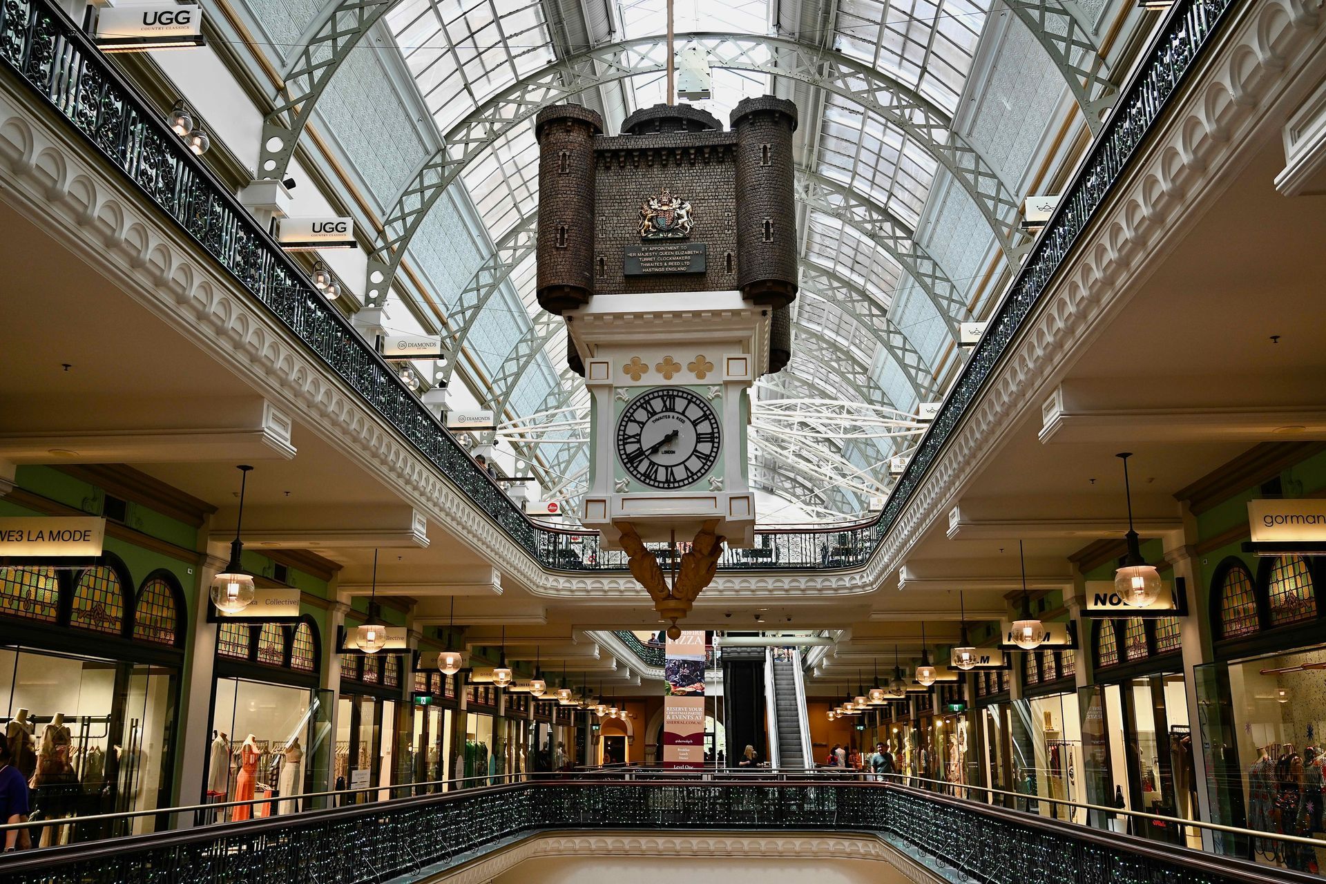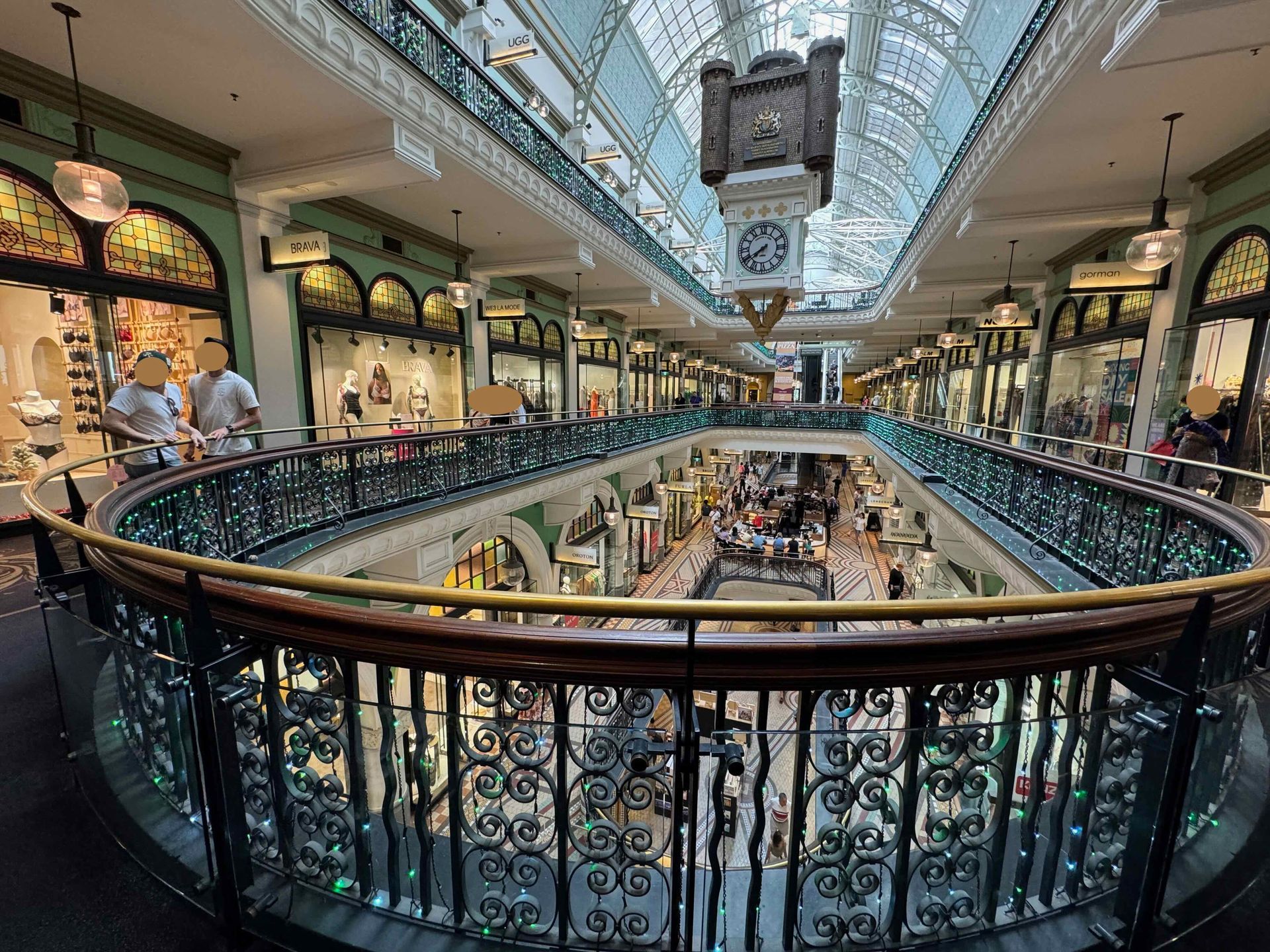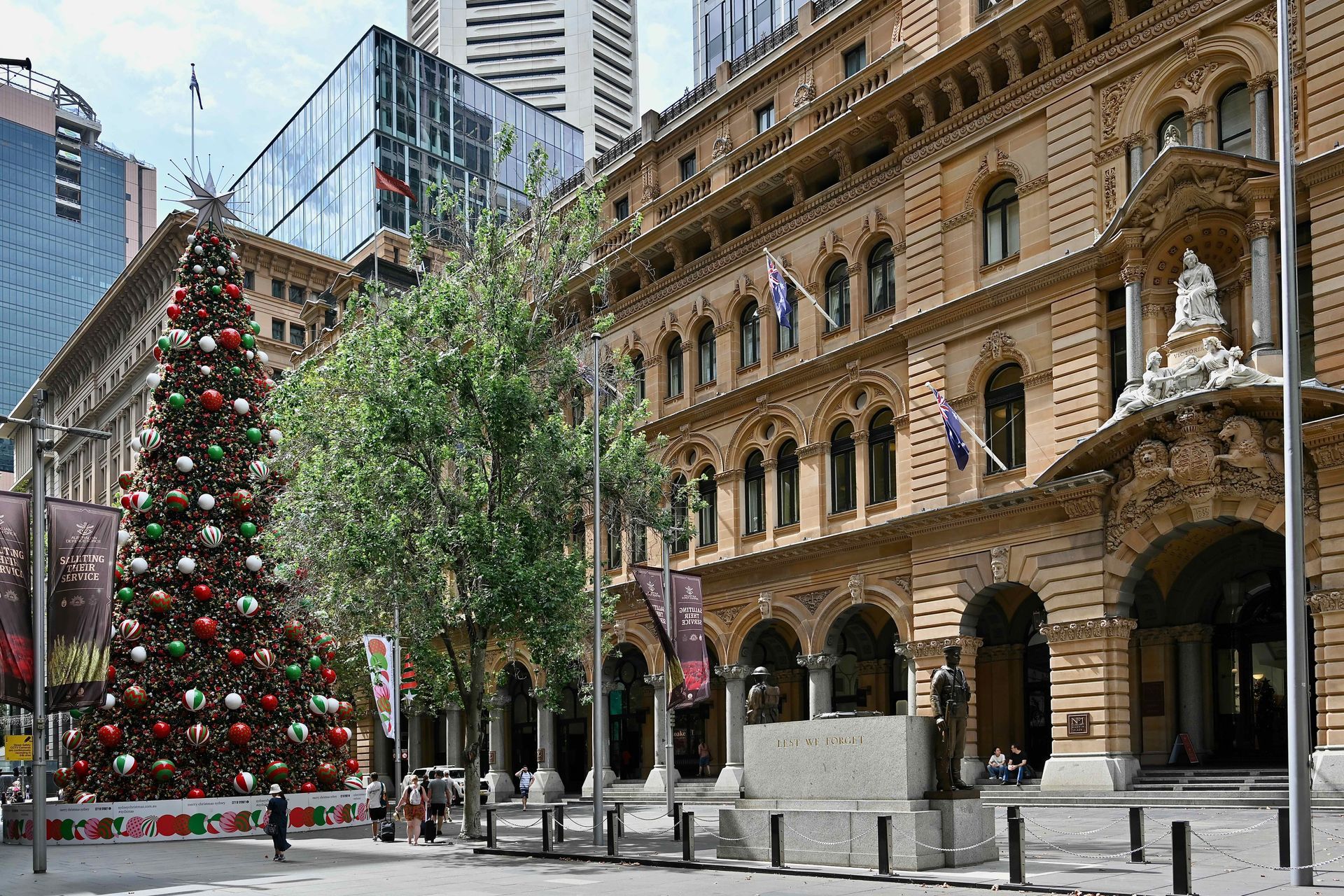 Es geht es zum Queen Victoria Building, das innen viel Weihnachtsatmosphäre versprüht.