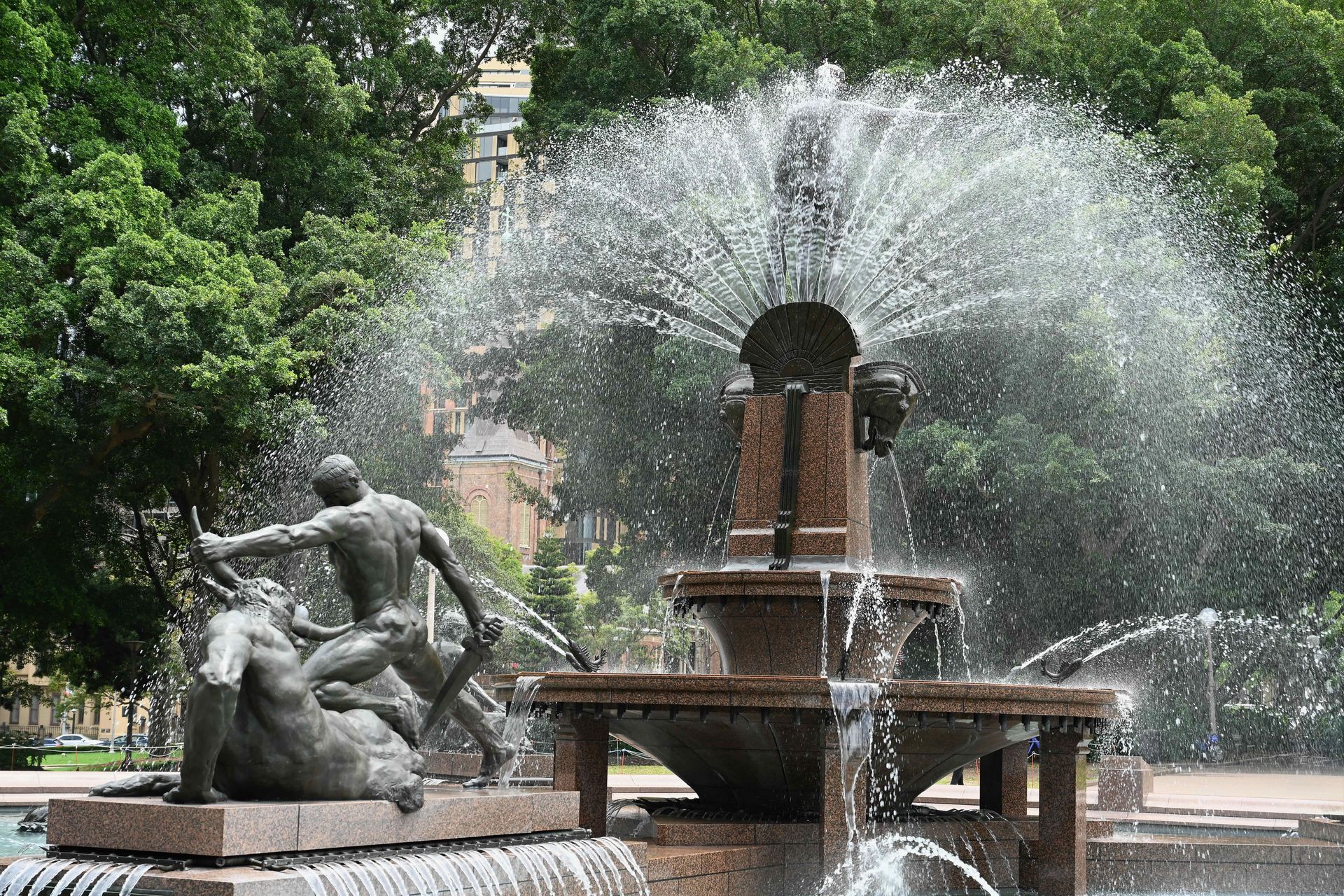 Durch den Hyde Park vorbei am Archibald Fountain nähern wir uns der St. Mary’s Cathedral.