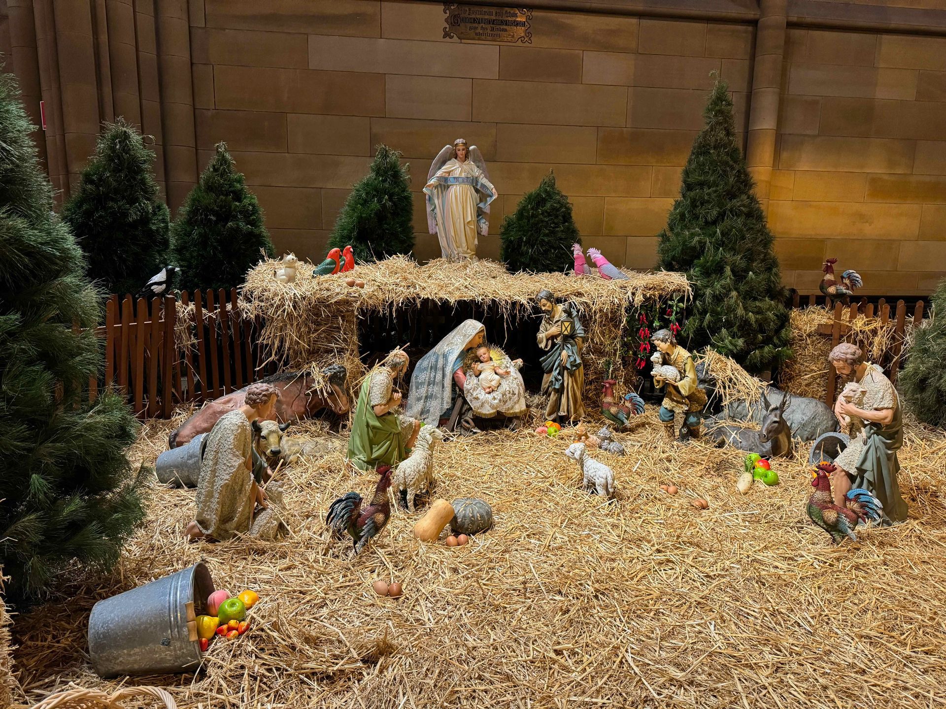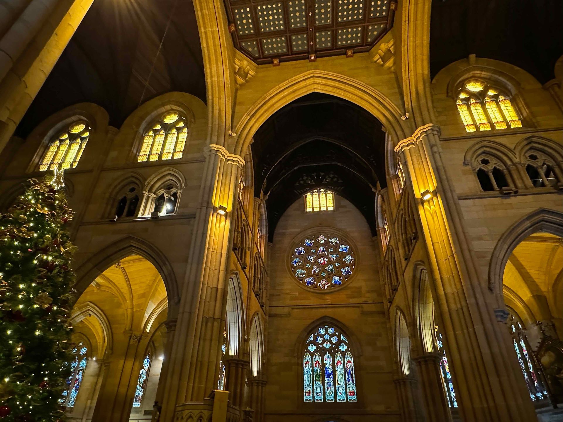Auch in der wunderschönen St. Mary‘s Cathedral ist alles weihnachtlich geschmückt. In der Krypta fallen mir hauptsächlich die Muster des Fußbodens auf und an der Krippenlandschaft finde ich putzig, dass Kakadus und Sittiche zugegen sind.