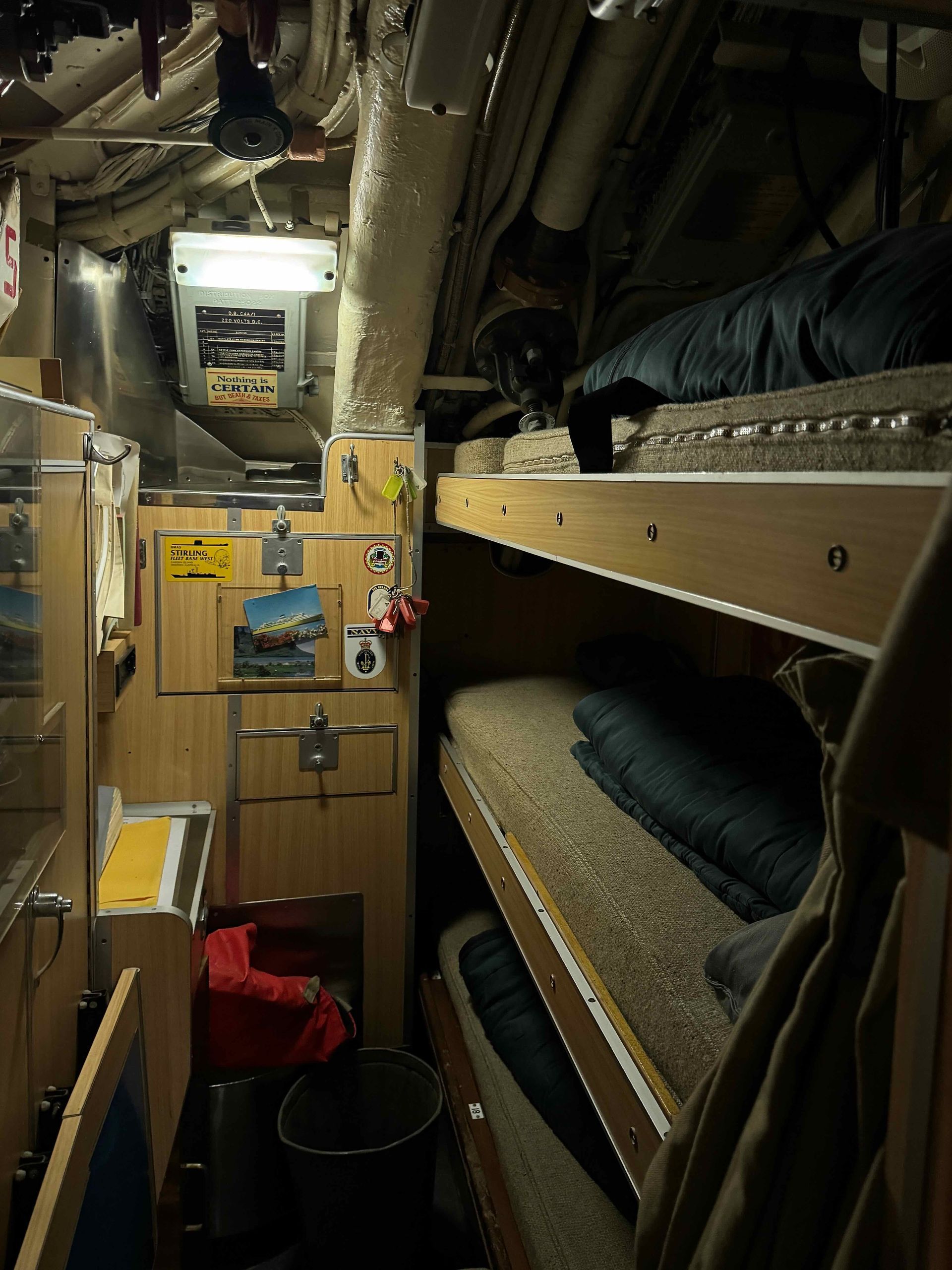 Noch nie zuvor waren wir auf einem U-Boot. Es ist unglaublich, wie eng alles ist und wie mühsam man von einem Bereich in den nächsten gelangt. Für 69 Besatzungsmitglieder zähle ich gerade mal drei Toiletten und eine winzige Nasszelle.
