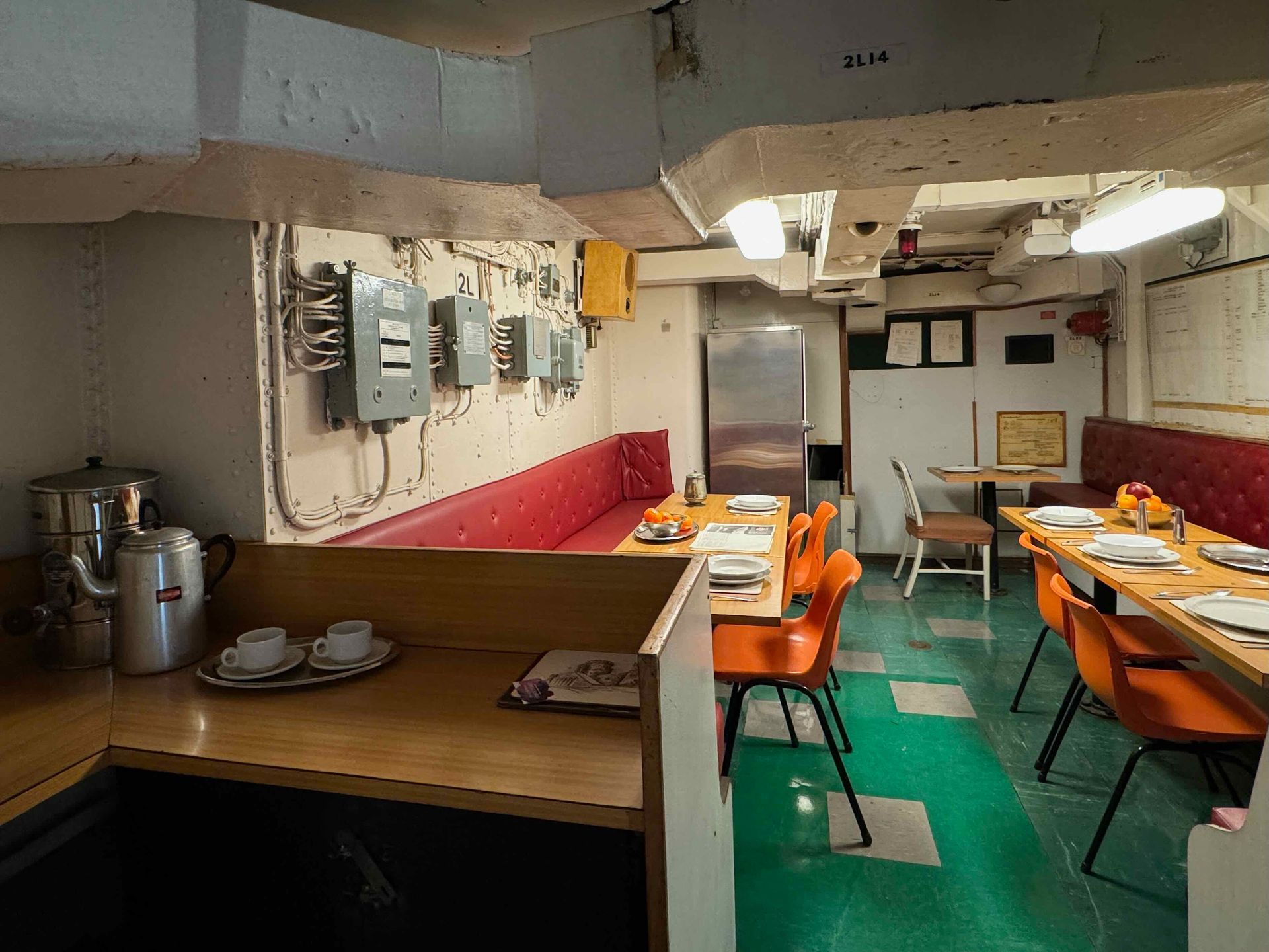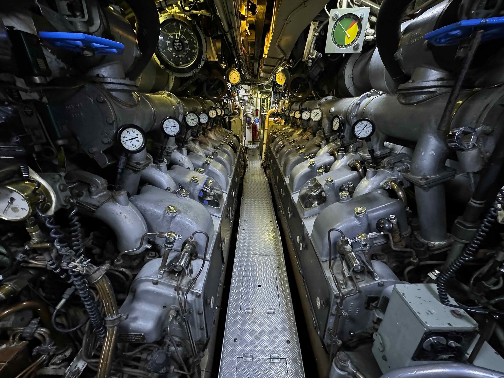 Ich habe wohl zu oft den - von mir so geliebten - Film „Unternehmen Petticoat“ gesehen. Der darin gezeigte rosarote Protagonist hat so gar nichts mit diesem hier zu tun. Wenn ich mir jedoch die Enge vorstelle und die Luft hier unten bei so vielen Menschen, muss das das Paradies für Mr. Seasick sein. Mich hat er aber tatsächlich und zum Glück in der kurzen Zeit des Besuches nicht gefunden. Vielleicht steckte er in einem engen Gang fest.