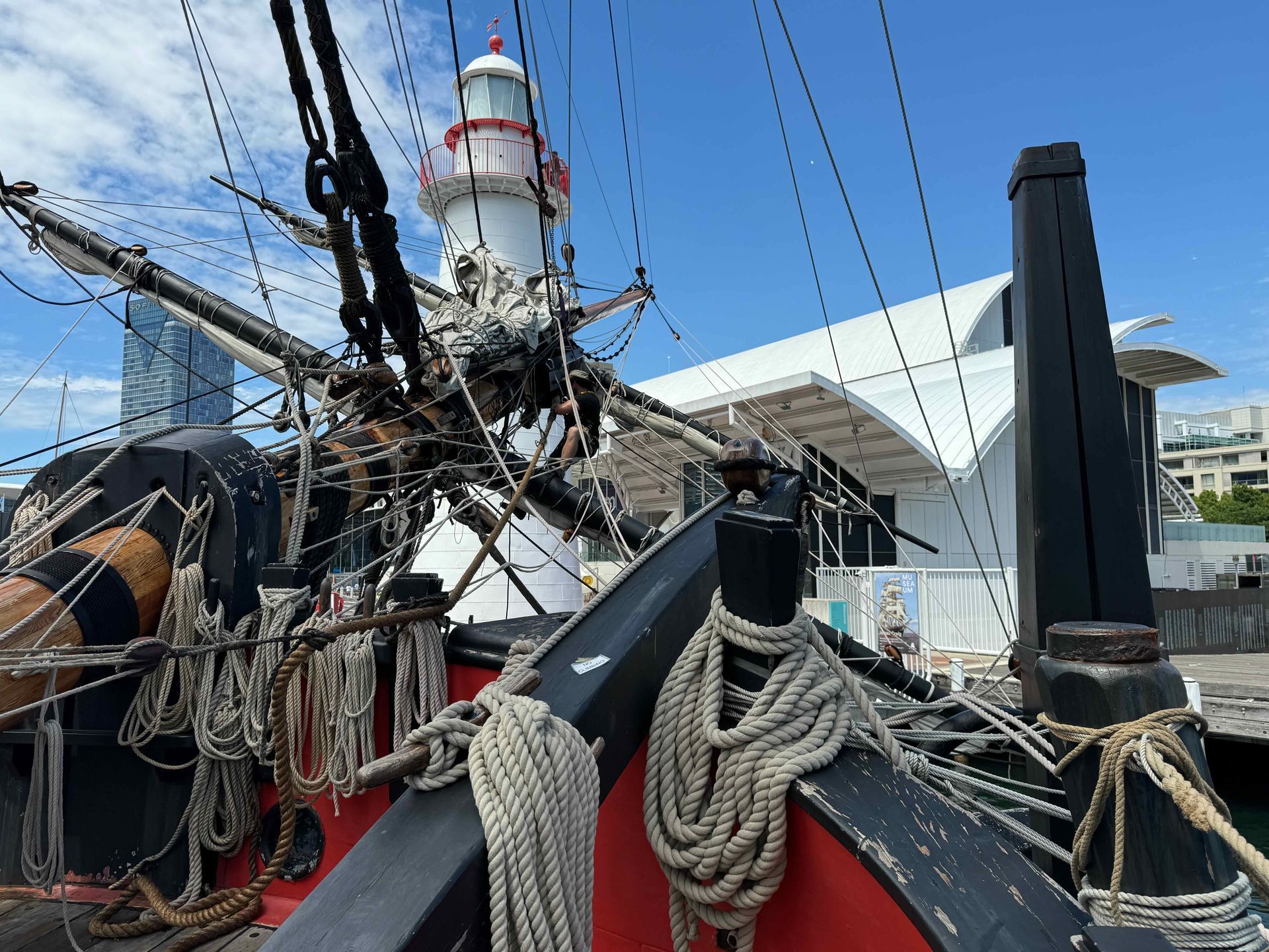 Ein Nachbau der Endeavour, dem berühmten Schiff, mit dem James Cook vor 250 Jahren über die Weltmeere segelte, rundet unseren Besuch in diesem tollen Museum mit der beeindruckenden Kulisse von Darling Harbour im Hintergrund ab.
