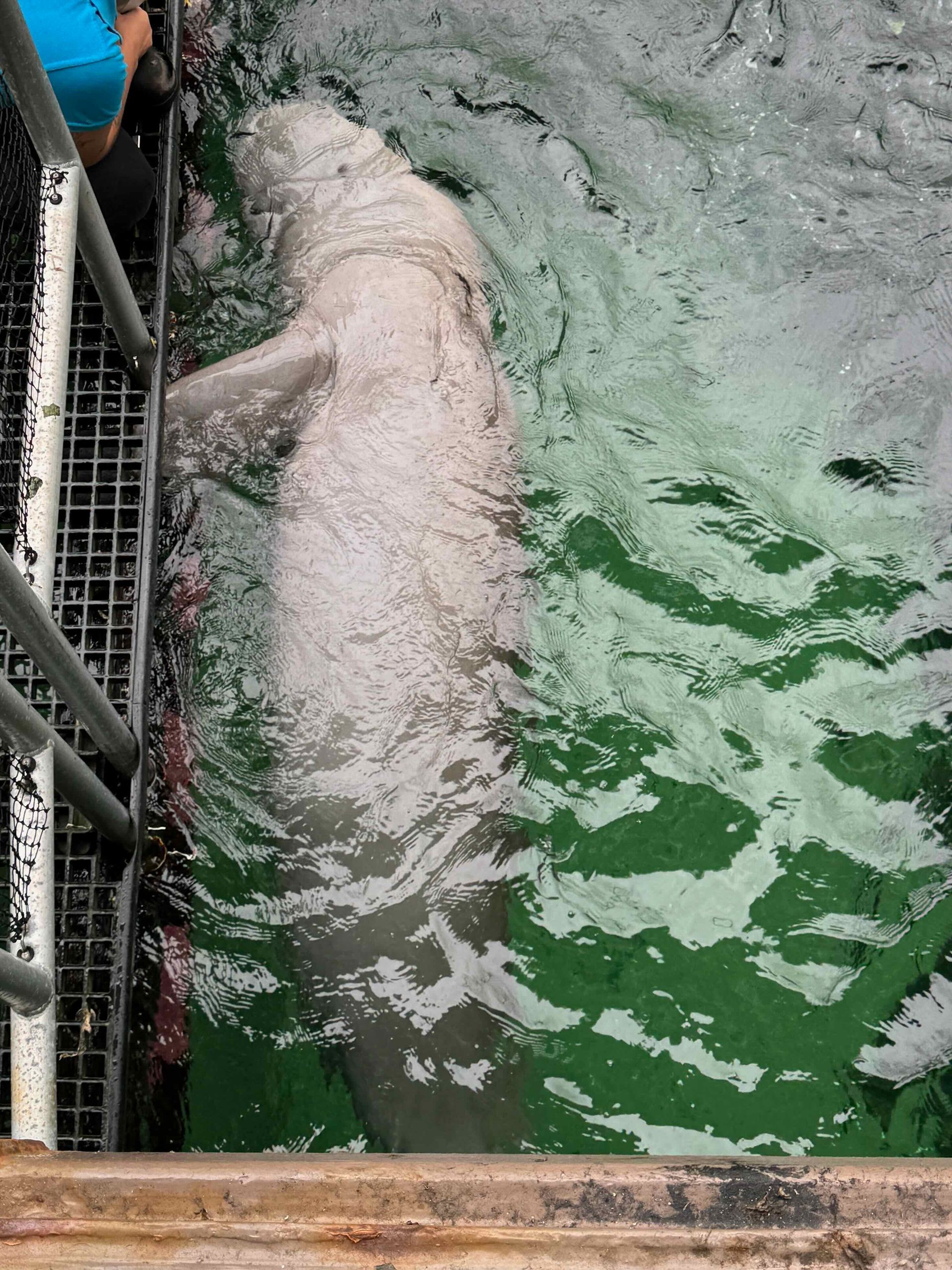 In einem großen Becken lebt ein Dugong mit Namen Pig. Dugongs sind vom Aussterben bedroht und unterscheiden sich von Manatees. Wir hatten bereits vor vielen Jahren einmal das große Glück, am Ningaloo Reef Dugongs zu sehen. Das war an einem wunderbaren Tag voller Highlights, wie Schnorcheln mit mehreren Walhaien und einer Gruppe Mantas.