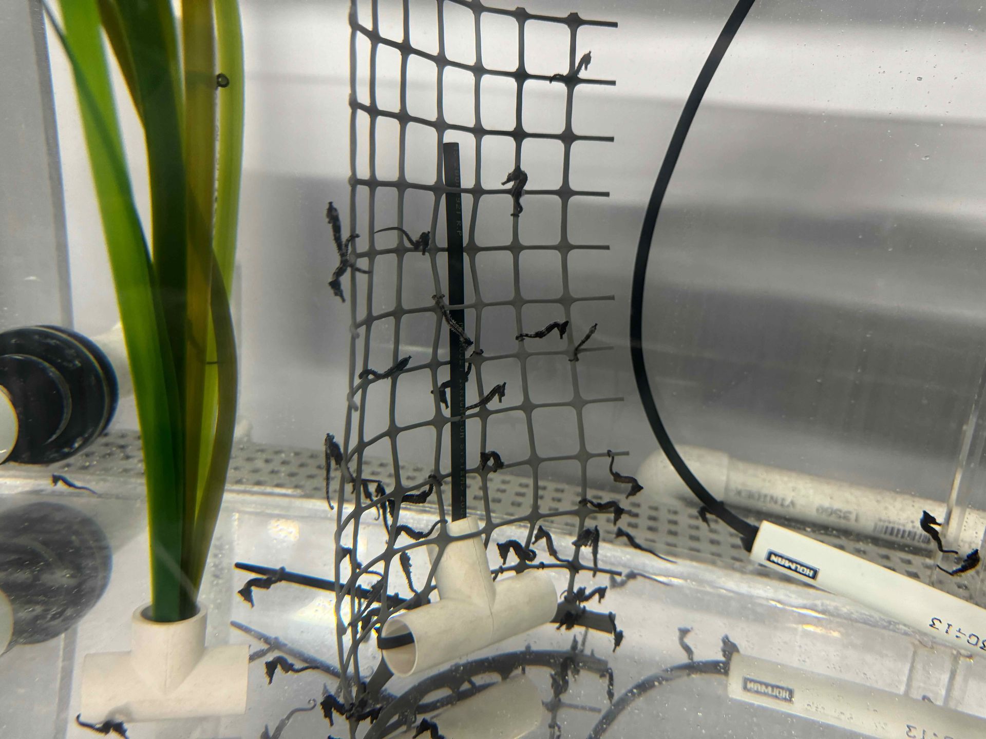Wir sehen die Reinigungsanlage, erfahren, wie oft das Wasser gereinigt wird, welche Haiarten im Aquarium leben und bekommen am Ende die Seepferdchen-Aufzuchtstation gezeigt. In verschiedenen Aquarien leben diese so wunderlichen, sympathischen Geschöpfe, die vor noch nicht langer Zeit geboren wurden. In der Regel nehmen die Weibchen eine hellere Farbe an, wenn sie wachsen, während die Männchen eher dunkel sind.