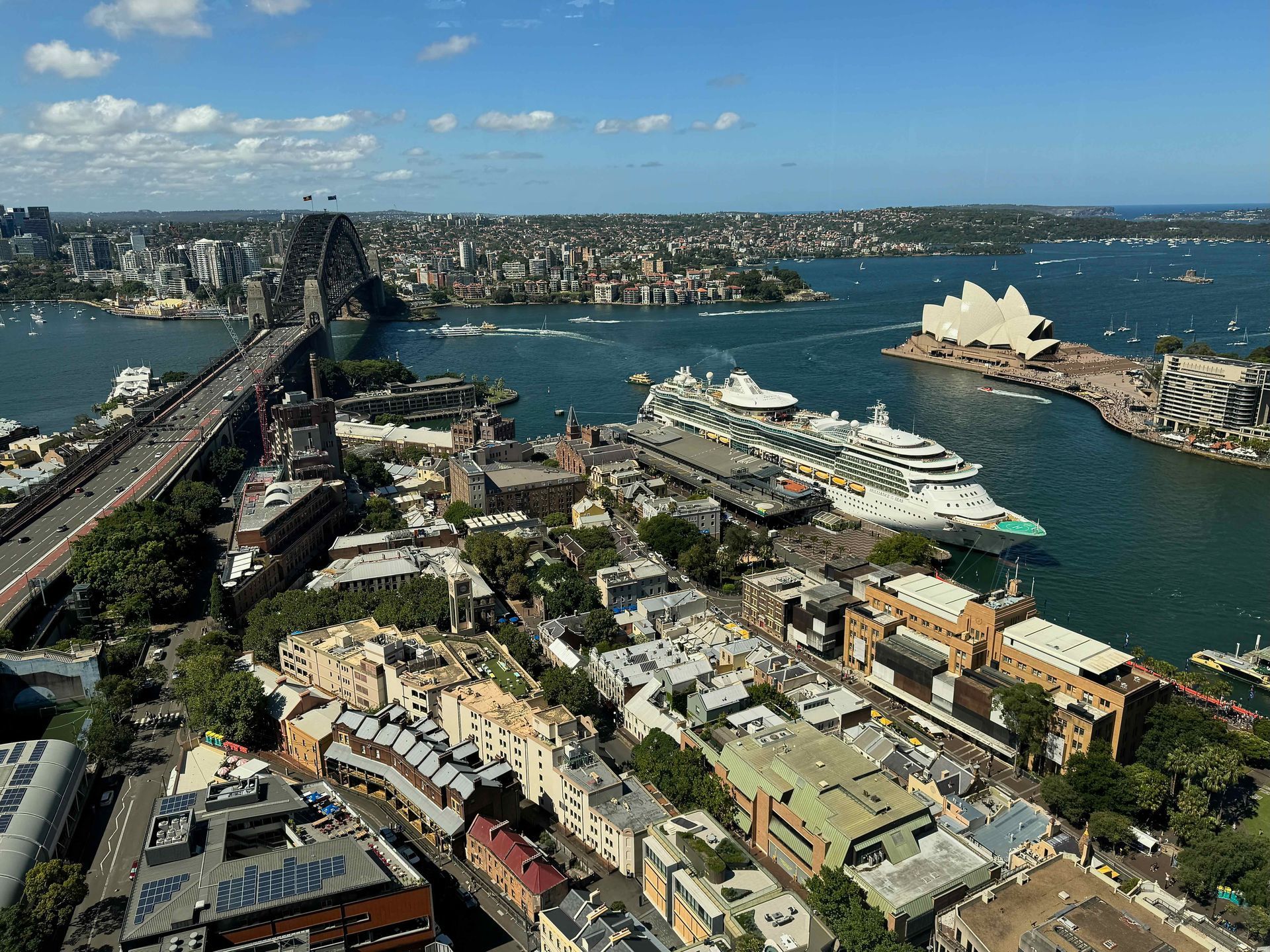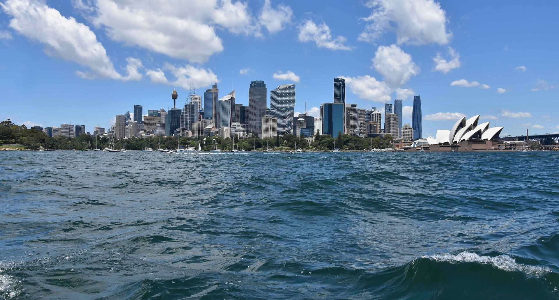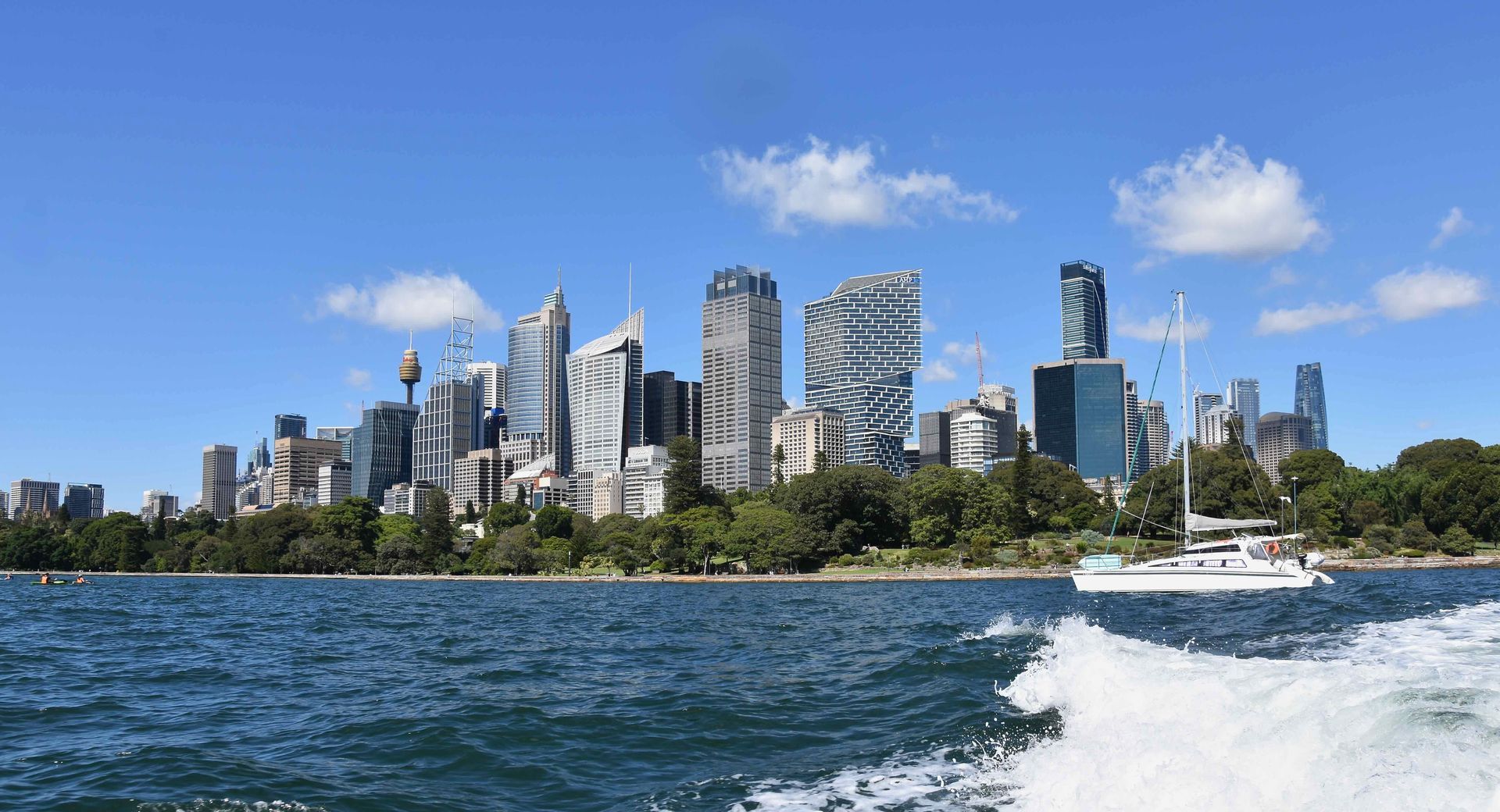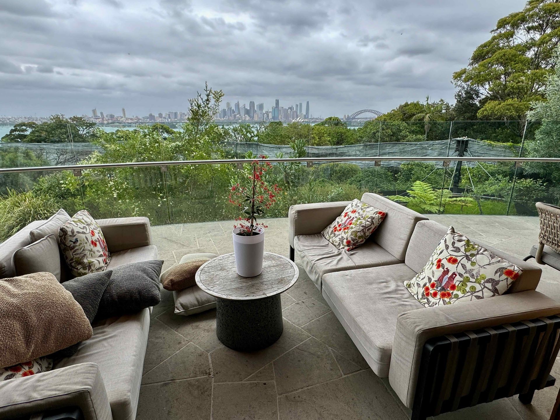 Nachmittags sitzen wir auf der Terrasse mit Blick auf die wunderschöne Skyline von Sydney und können uns für heute keinen besseren Platz vorstellen.