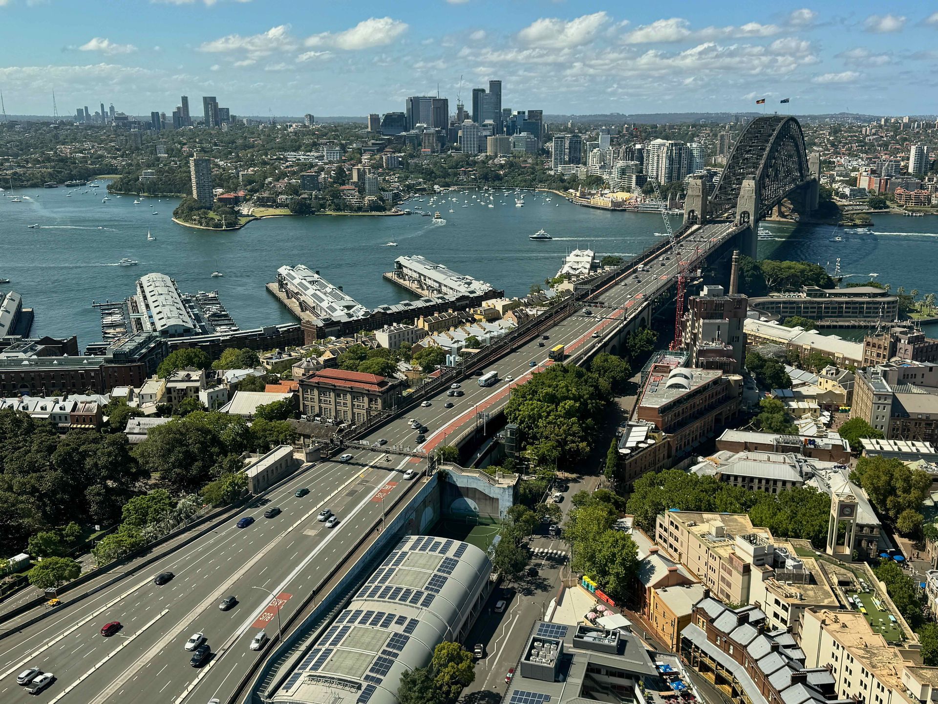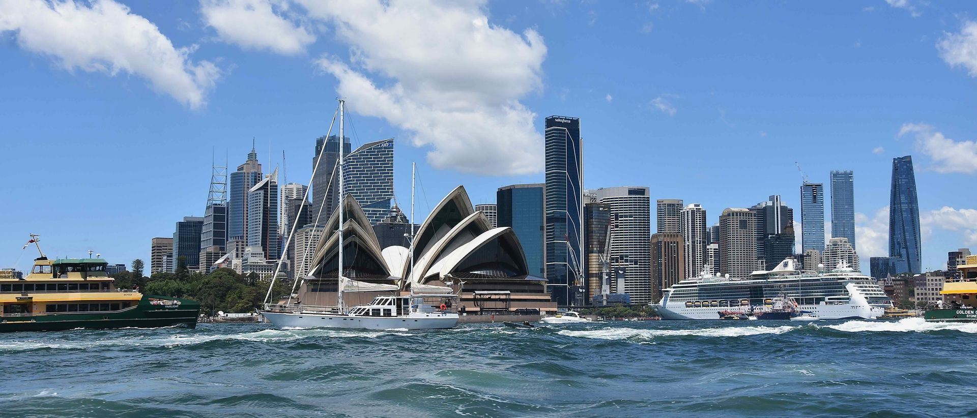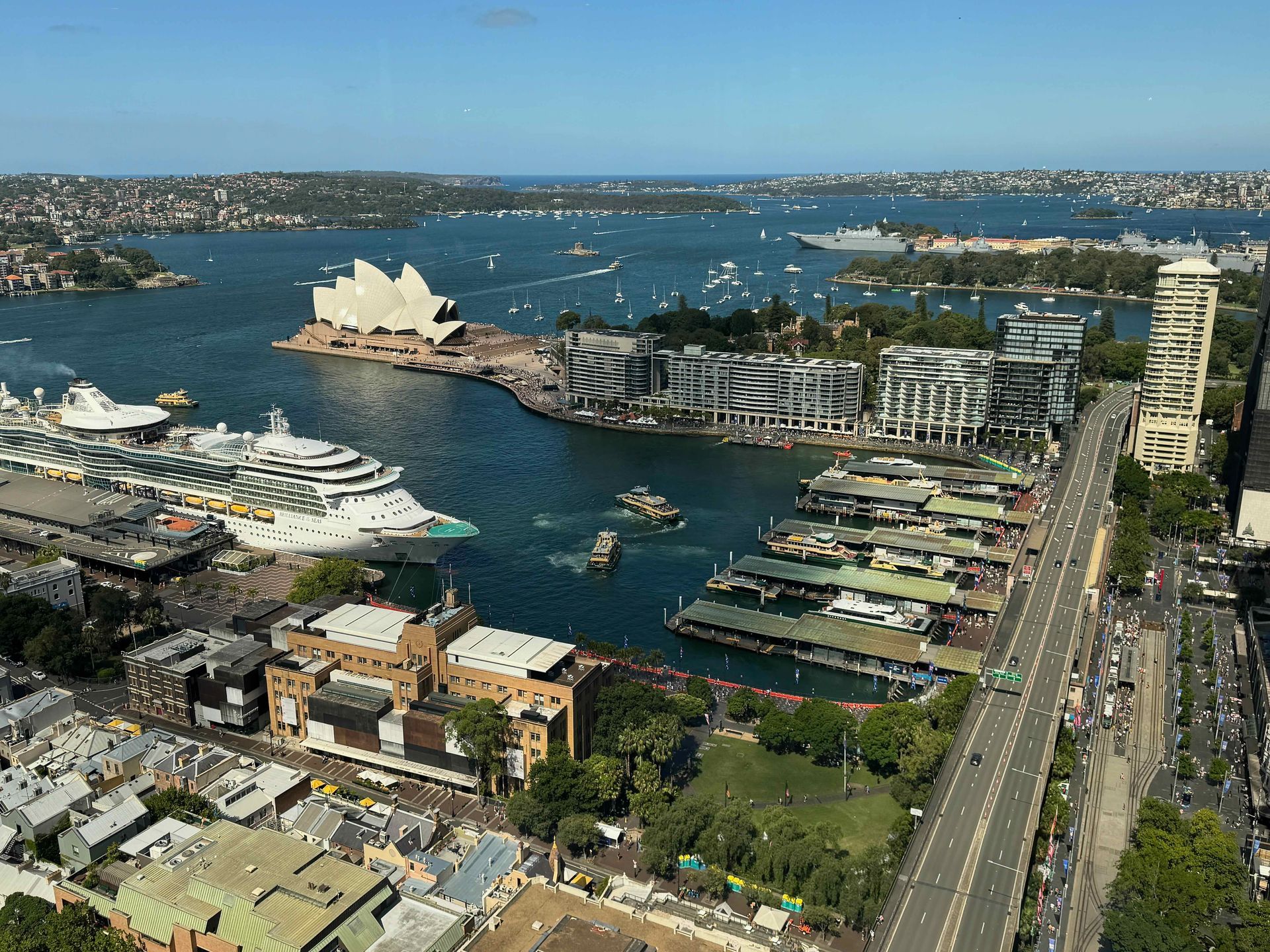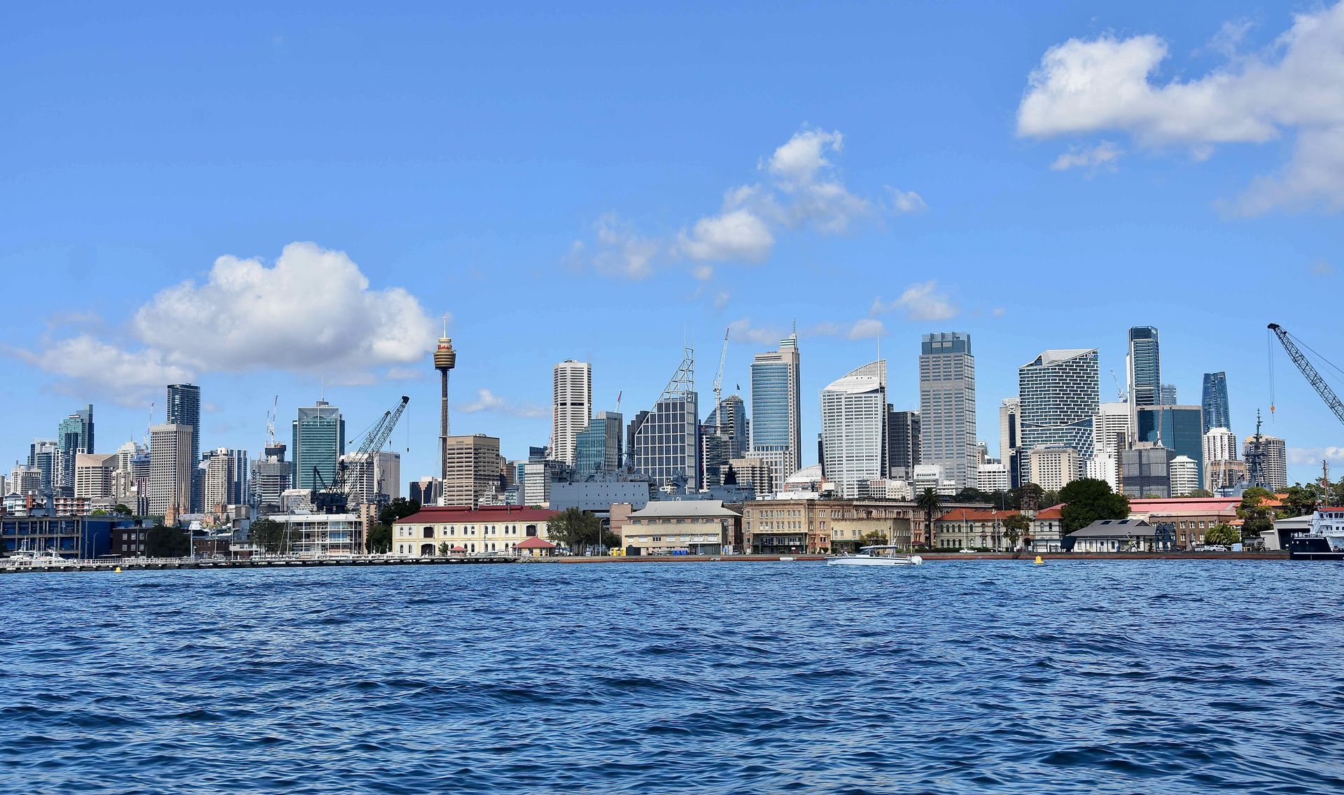 Nachmittags sitzen wir auf der Terrasse mit Blick auf die wunderschöne Skyline von Sydney und können uns für heute keinen besseren Platz vorstellen.