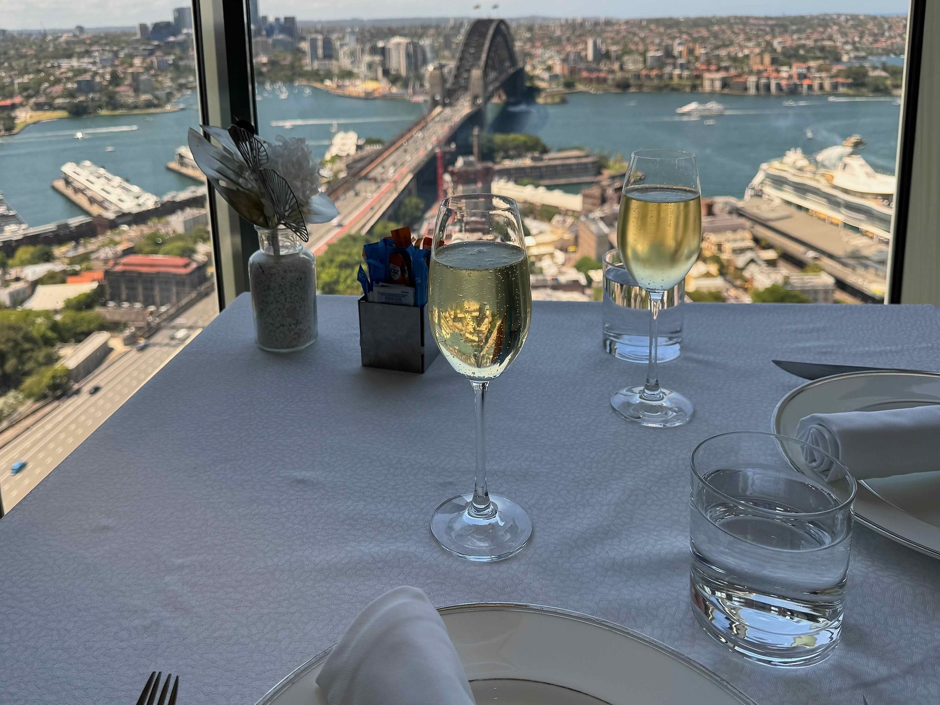 Bei einem weiteren hervorragenden Abendessen im Restaurant genießen wir erneut den direkten Blick auf den Hafen von Sydney. Es ist einfach nur fantastisch, die beleuchtete Skyline zu betrachten.
