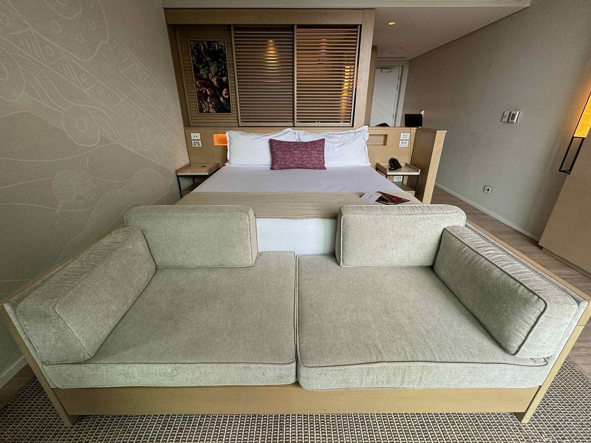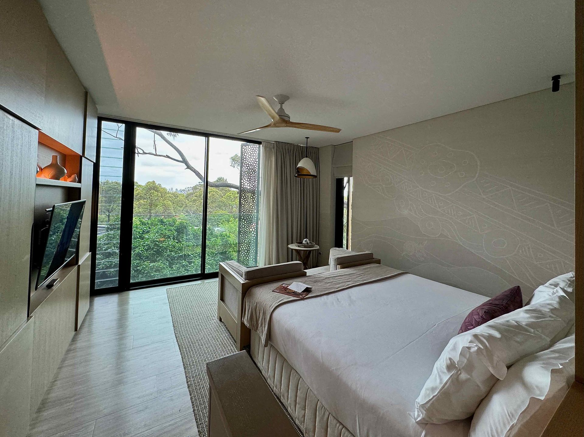 Unser Zimmer ist super, die bodentiefen Fenster können zur Seite geschoben werden. Wir schauen direkt aufs Känguru Gehege.