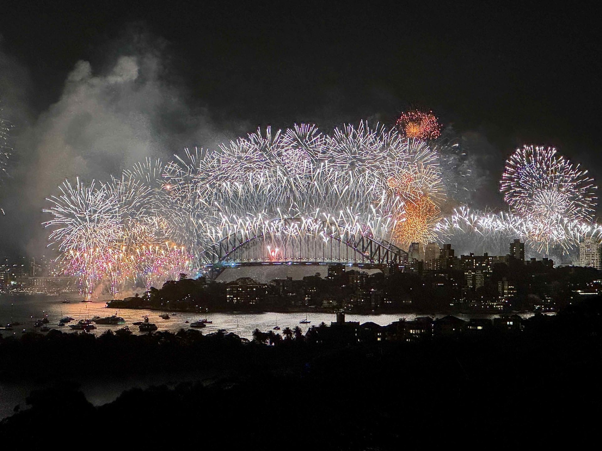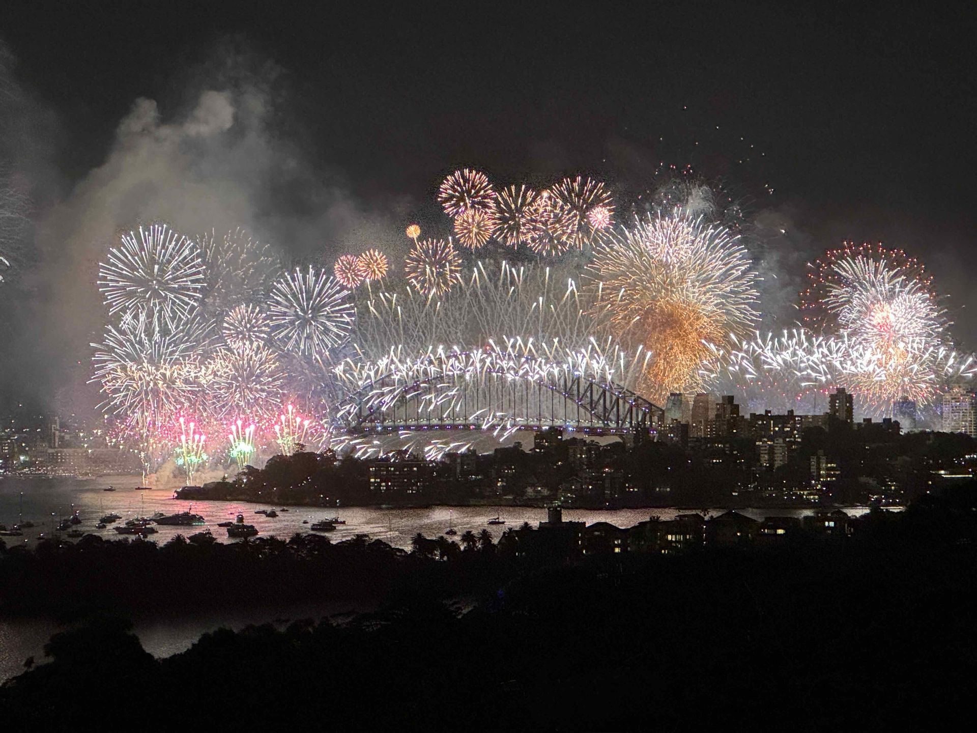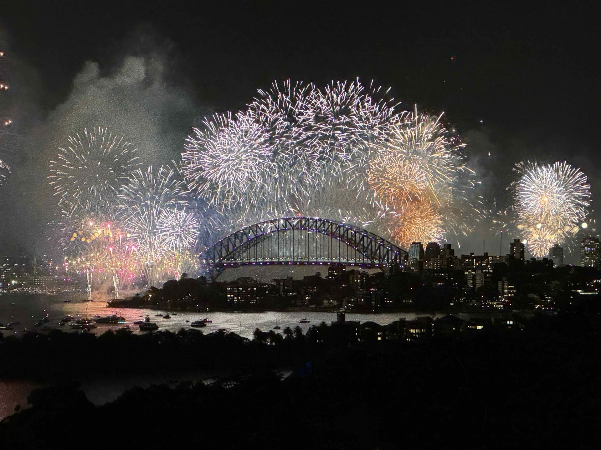 Das Feuerwerk um Mitternacht ist der Wahnsinn, der Hammer, eigentlich nicht zu beschreiben. Beschränken sich die Bilder meist auf die Harbour Bridge und vielleicht noch den Bereich über der Oper, sehen wir jetzt, dass es viel größer und noch viel spektakulärer ist. Durch die Lage unseres persönlichen Vantage Points können wir den ganzen Bereich überblicken.