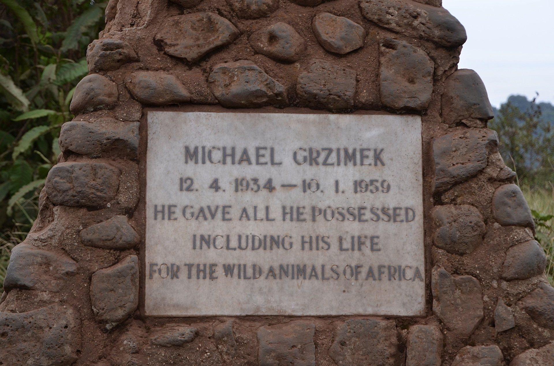 Nicht weit entfernt vom Viewpoint halten wir kurz am Grab von Michael Grzimek und Prof. Bernhard Grzimek. Aufgrund der Gefahr durch Wildtiere ist das Aussteigen hier verboten. Michael Grzimek wurde keine 25 Jahre alt. Er stürzte nach einem Zusammenstoß mit einem Geier mit seiner Dornier im Zebralook über der Serengeti ab und wurde am Rande des Ngorongoro Kraters beigesetzt. Sein Vater Bernhard starb im Jahr 1987 in Frankfurt, er fand seine letzte Ruhestätte neben seinem Sohn in Tansania.