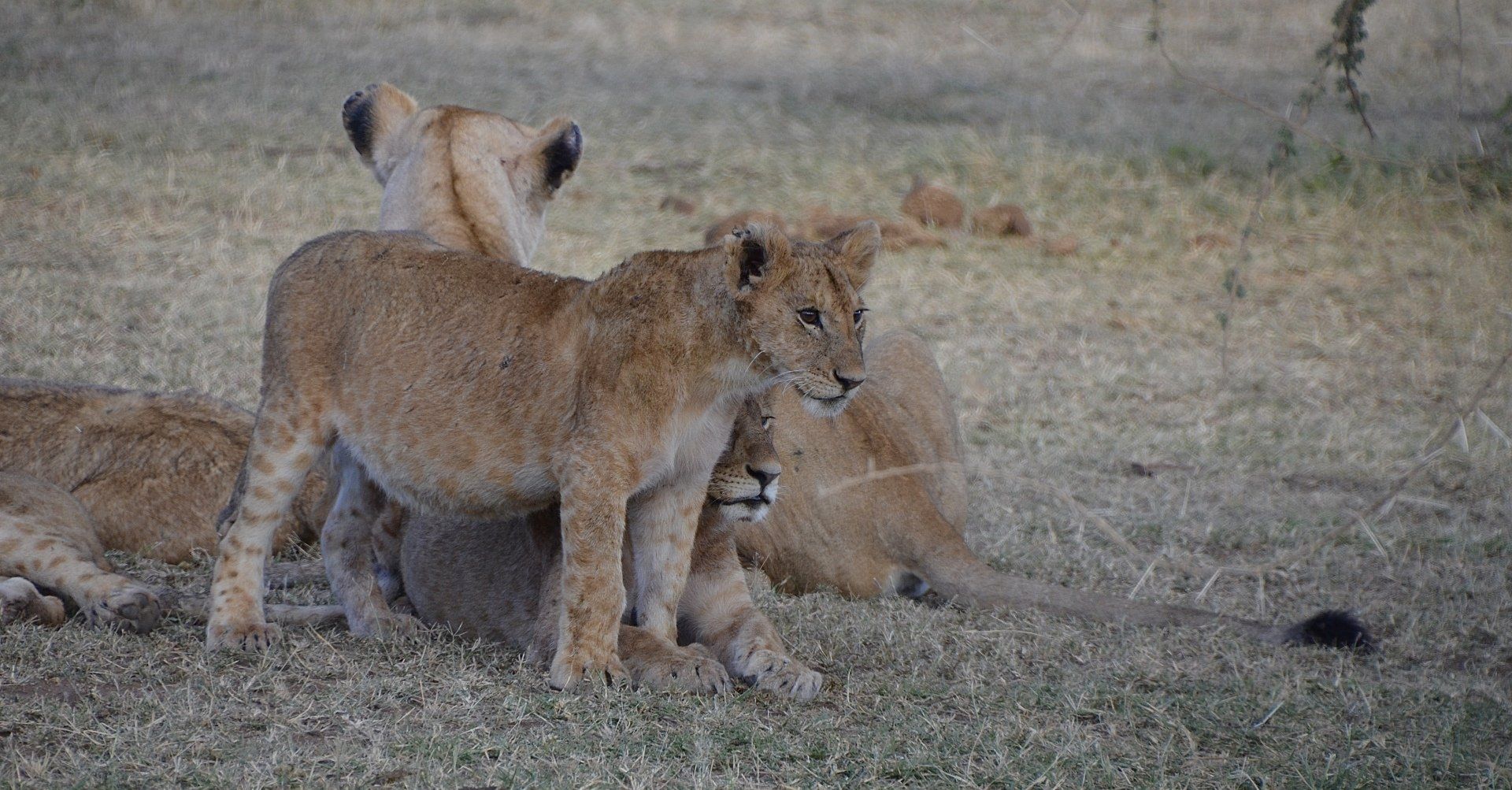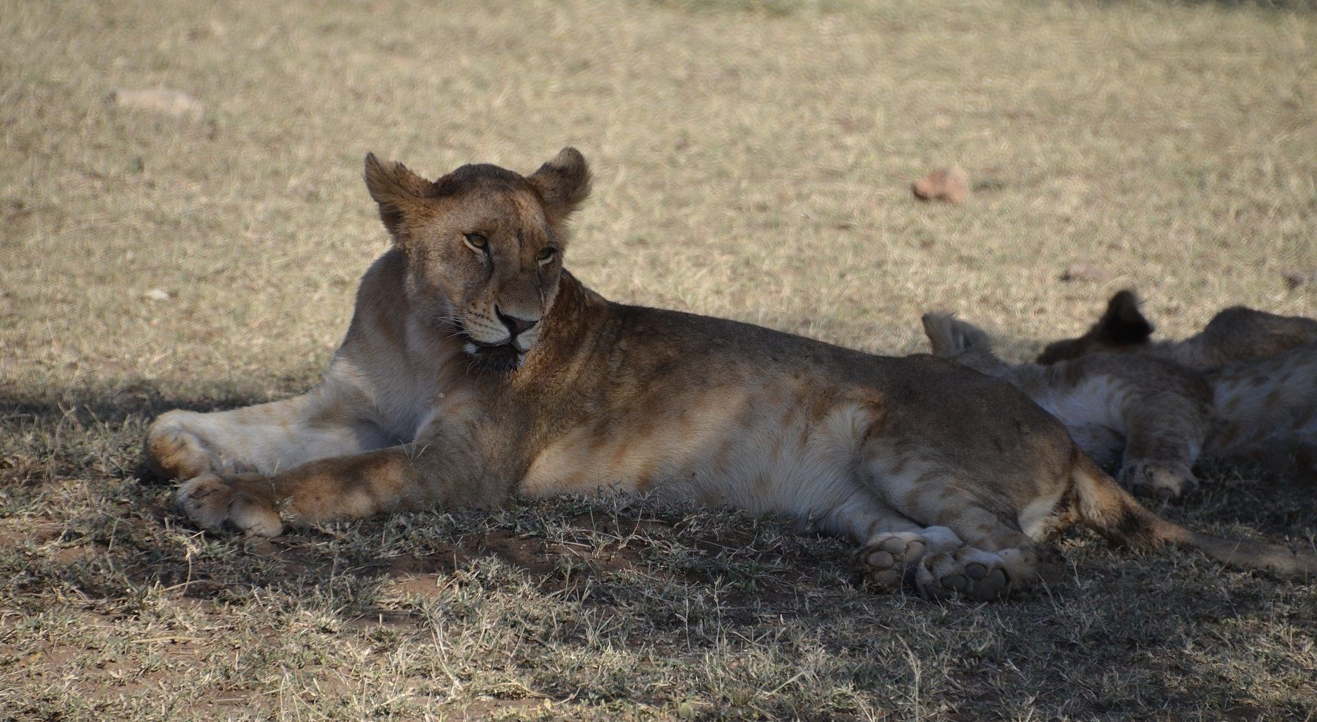 Wir fahren weiter und schon liegt wieder ein Löwenrudel unter einem Baum. Die kleineren Mitglieder des Rudels scheinen ein ausgiebiges Frühstück zu sich genommen zu haben. Ihre Bäuche sind dermaßen prall gefüllt, dass ich lachen muss.